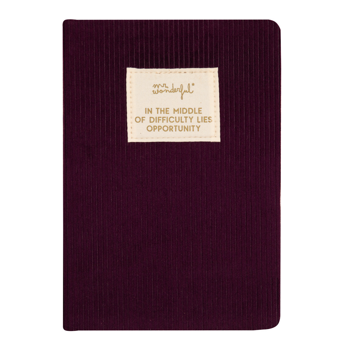 A5 notebook corduroy aubergine - In the middle of difficulty lies opportunity.