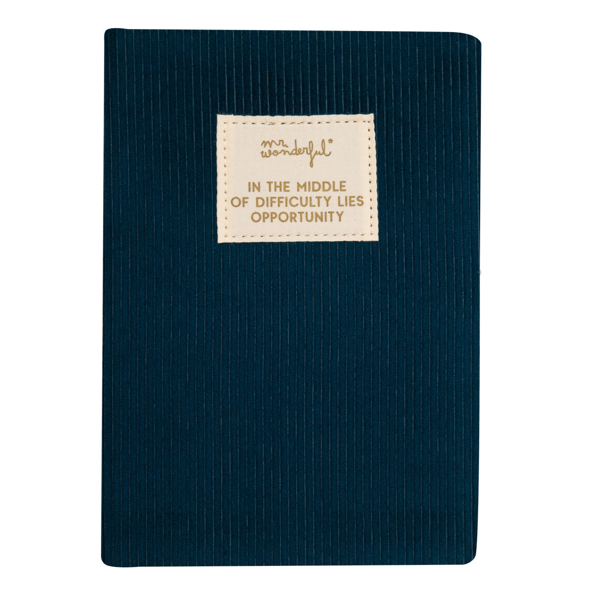 A5 notebook corduroy blue - In the middle of difficulty lies opportunity.