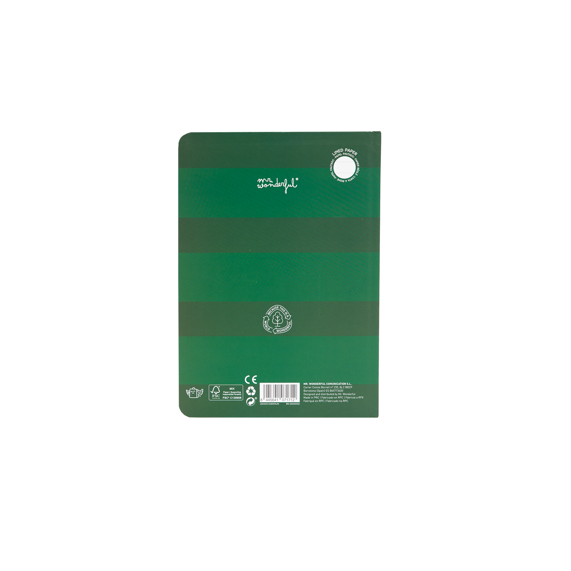 Cuenta con 192 páginas pautadas de papel de 100gsm con certificado FSC, que garantiza que proviene de bosques gestionados de forma responsable.