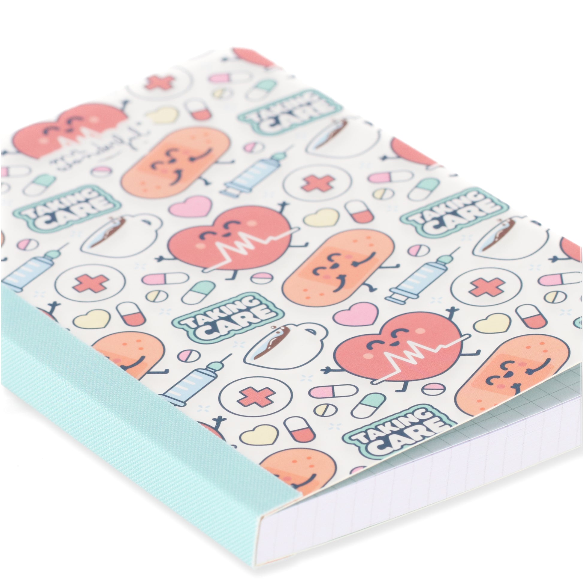 Libreta de tamaño A6 con encuadernación cosida que permite una apertura de 180º. Su portada tiene un acabado suave al tacto.