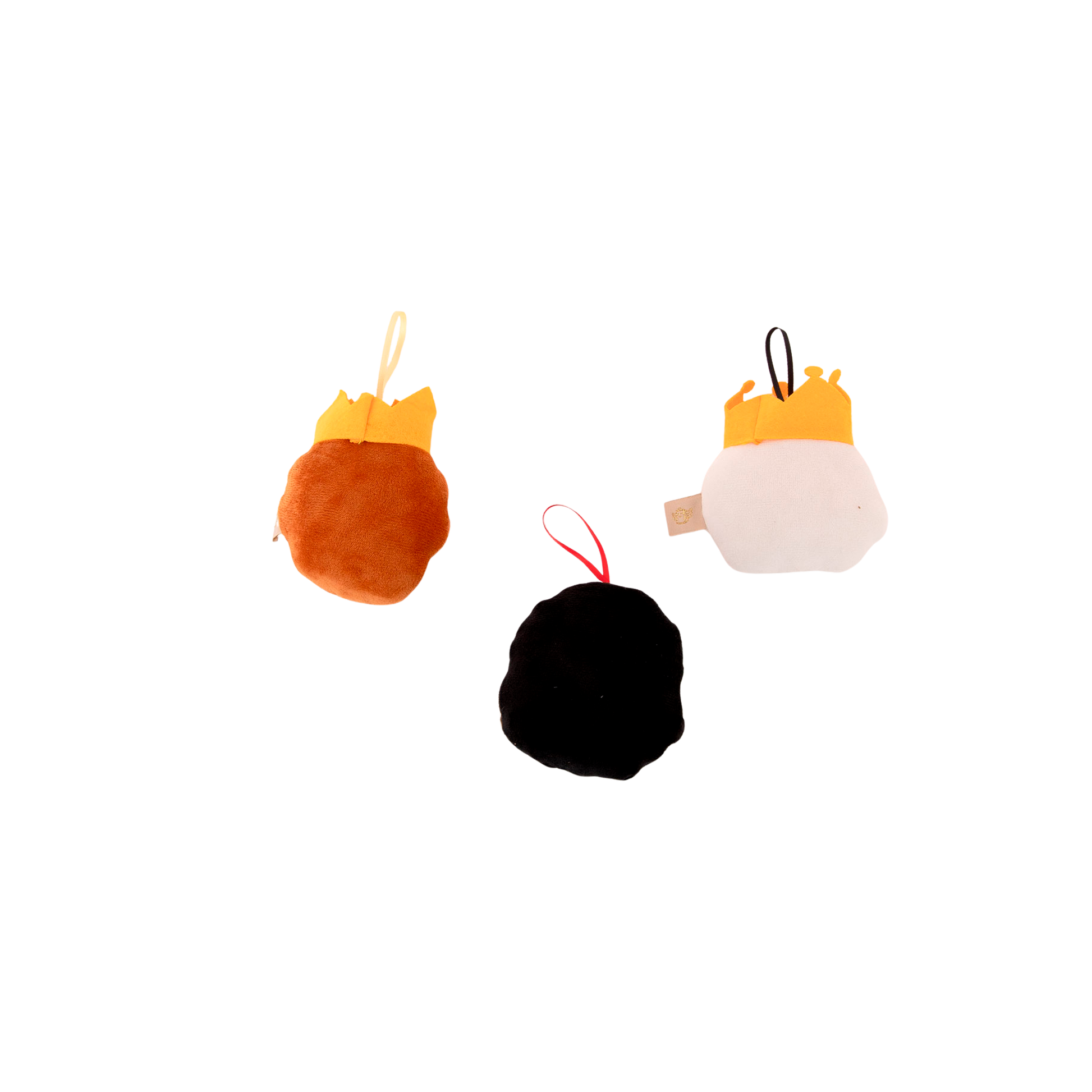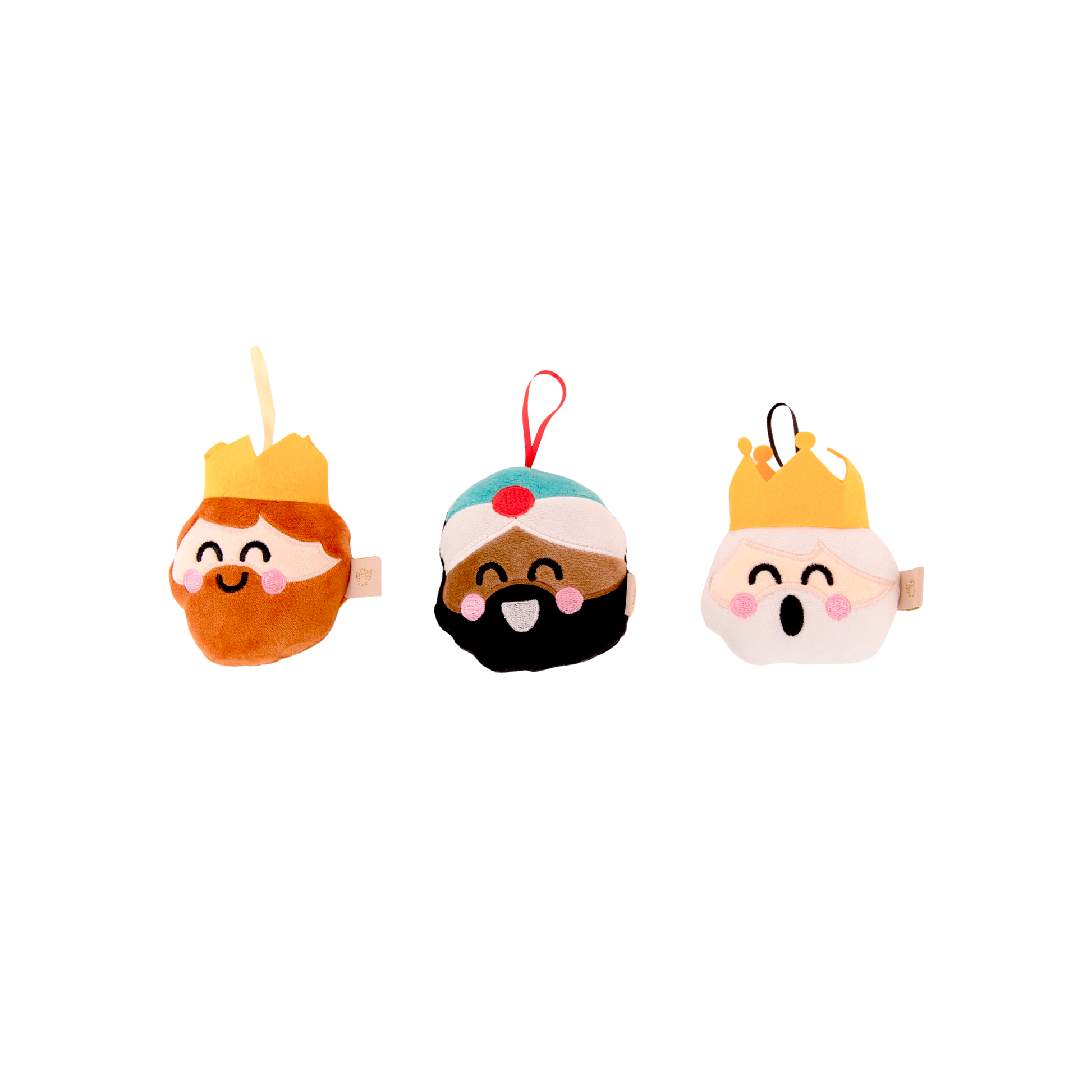 Set de tres adornos navideños para el árbol, realizados en poliéster, con forma de los tres Reyes Magos de Oriente.