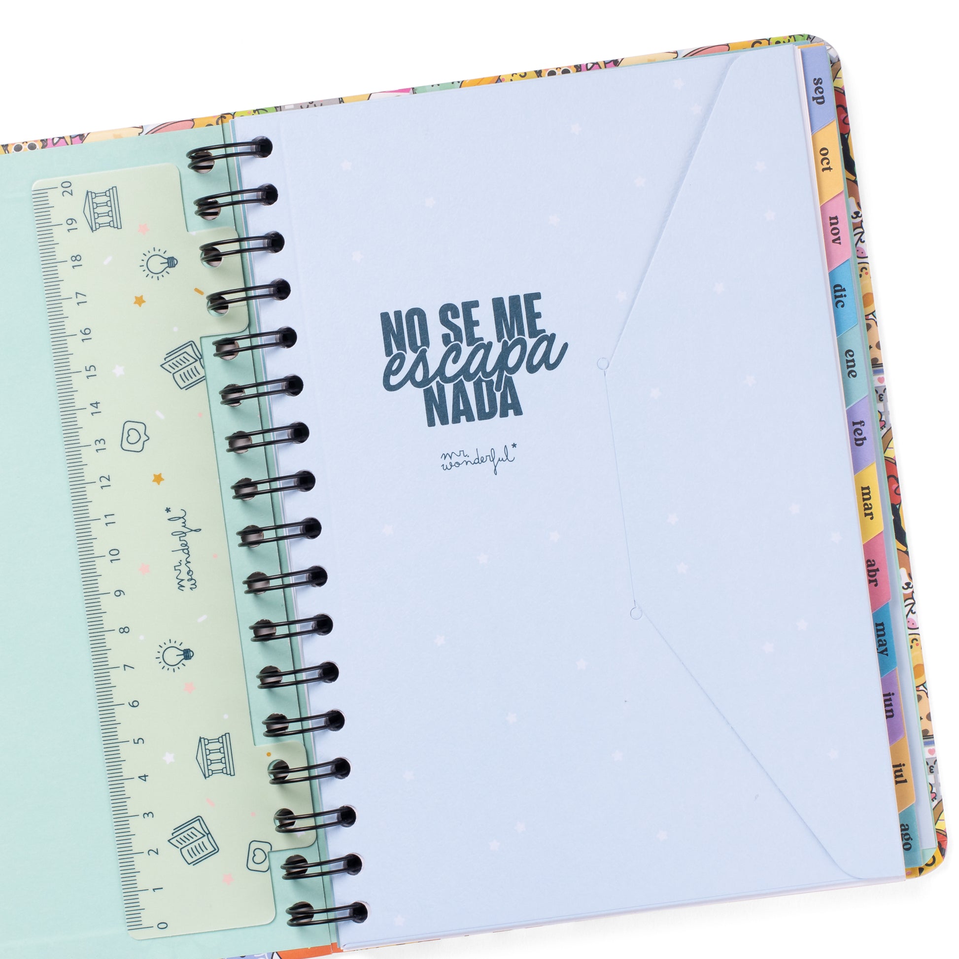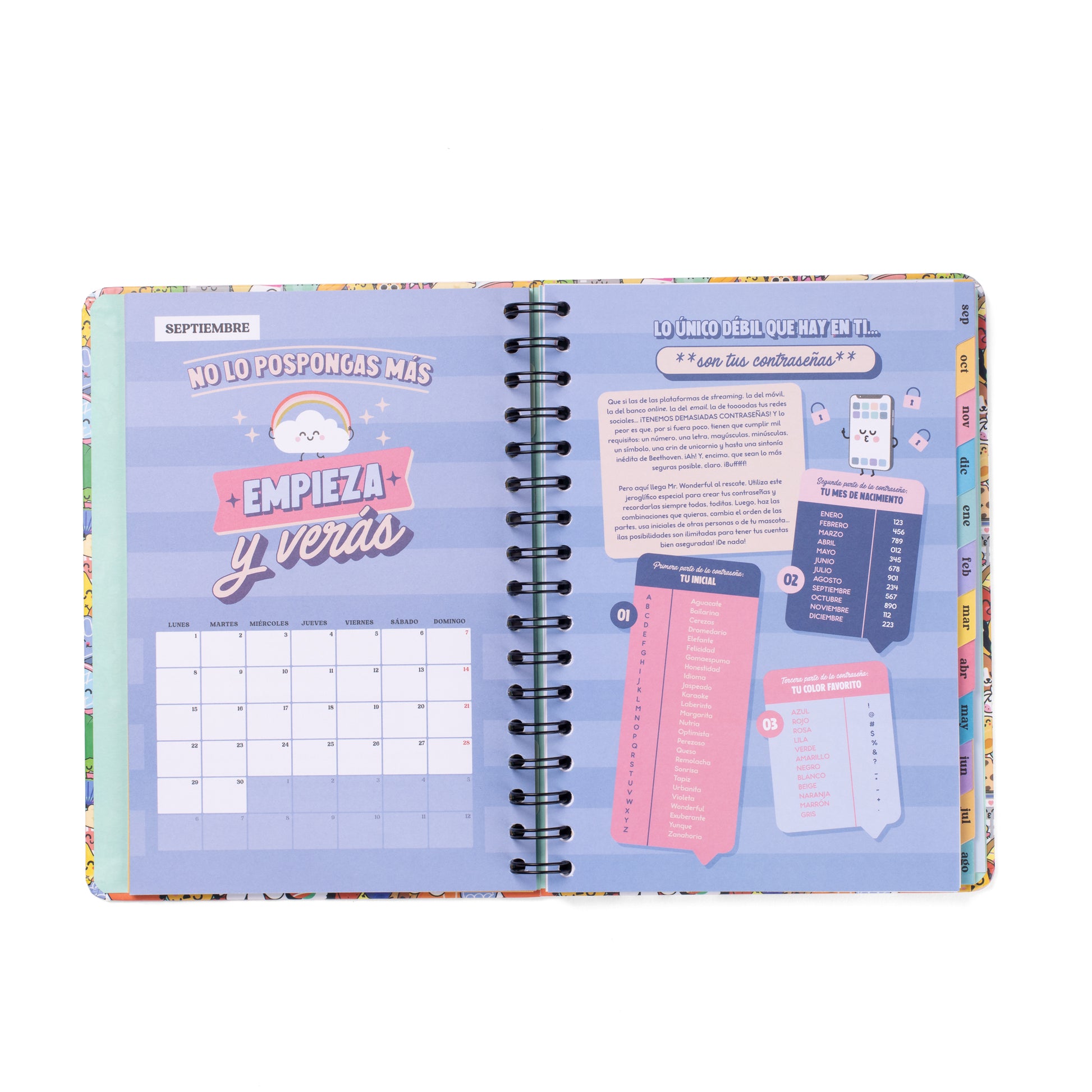 Agenda estilo Wonder de Mr. Wonderful, con organización semanal, va de septiembre de 2025 a finales de agosto de 2026. Esta agenda contiene: