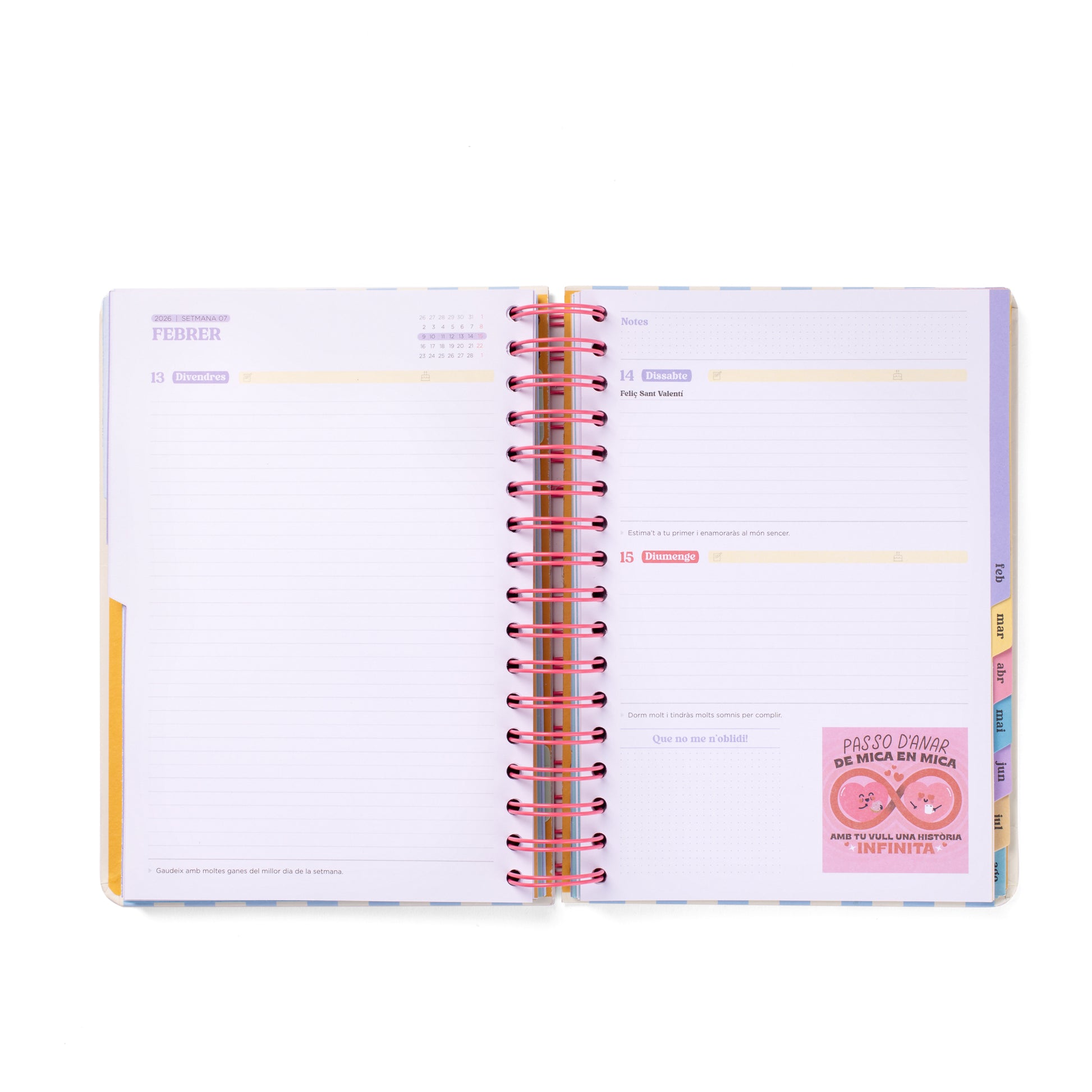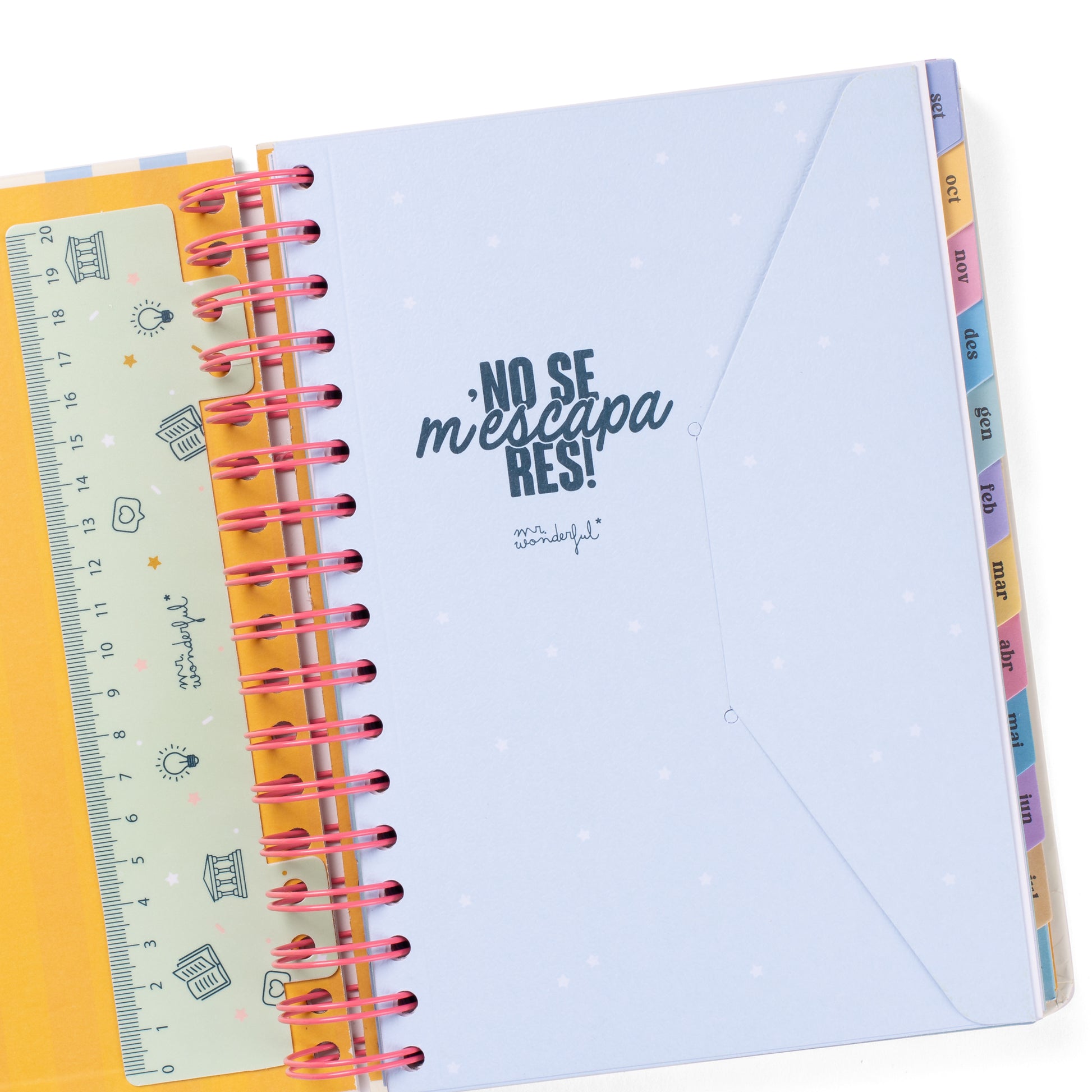 Agenda estil Wonder de Mr. Wonderful, amb organització diària, va de setembre de 2025 a finals d'agost de 2026. Aquesta agenda conté: