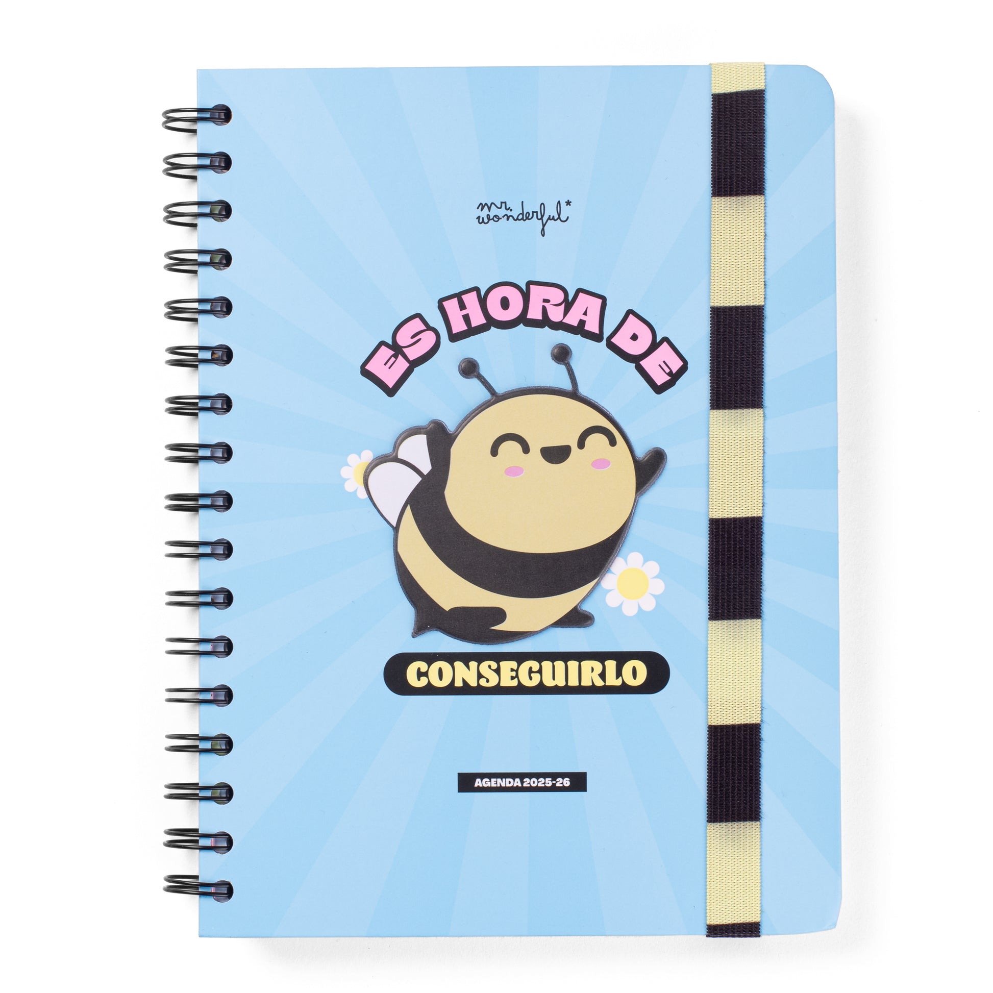 Agenda estilo Wonder de Mr. Wonderful, con organización semanal, va de septiembre de 2025 a finales de agosto de 2026. Esta agenda contiene: