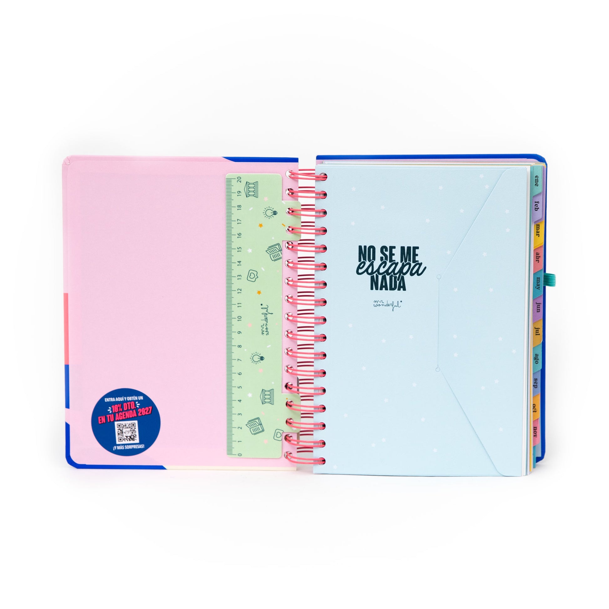 Agenda estilo Wonder de Mr. Wonderful, con organización diaria, va de enero a diciembre de 2026.