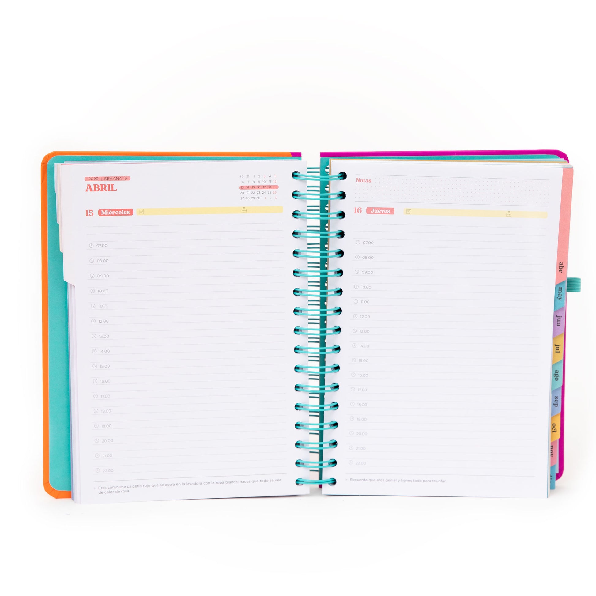 Agenda estilo Wonder de Mr. Wonderful, con organización diaria, va de enero a diciembre de 2026.
