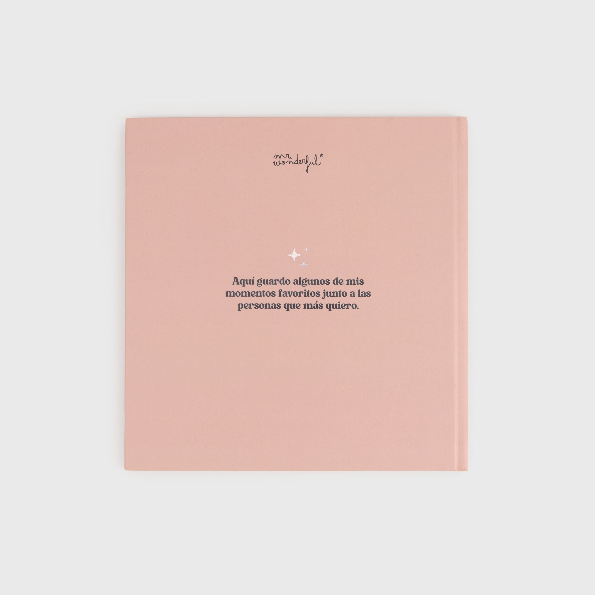 Álbum de fotos de pequeño tamaño, de temática abierta. Con 64 páginas y 8 hojas de pegatinas para decorarlas. En la primera de sus páginas encontramos un espacio en el que poner el nombre de la persona que hace el álbum, acompañado de un bonito texto inspiracional.