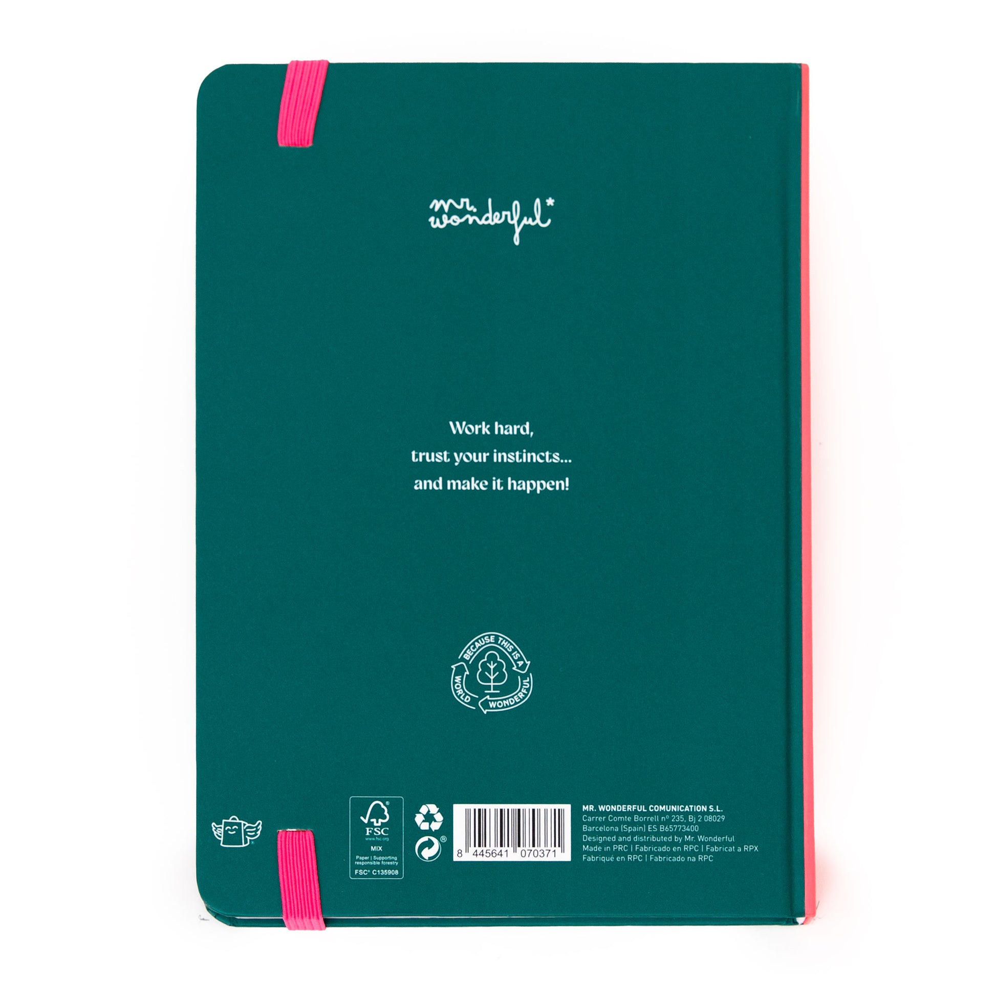 Una agenda de organización semanal sencilla y básica, con menos contenido interior que las demás agendas Mr. Wonderful. Esta agenda va de enero a diciembre de 2026 e incorpora en su portada una goma elástica para poder acoplar en ella el teléfono móvil y otra para poder acoplar un bolígrafo, lo que la hace ideal para asistir a reuniones, por ejemplo. Si bien su portada es en inglés, el interior lo encontraremos en todos los idiomas (inglés, español, francés, italiano y portugués). Contiene:
