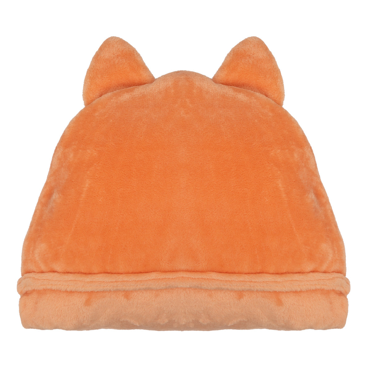 Manta realizada en?poliéster, con capucha y con?forma de?cabeza de?panda rojo. Es muy?suave y?gustosa al?tacto.