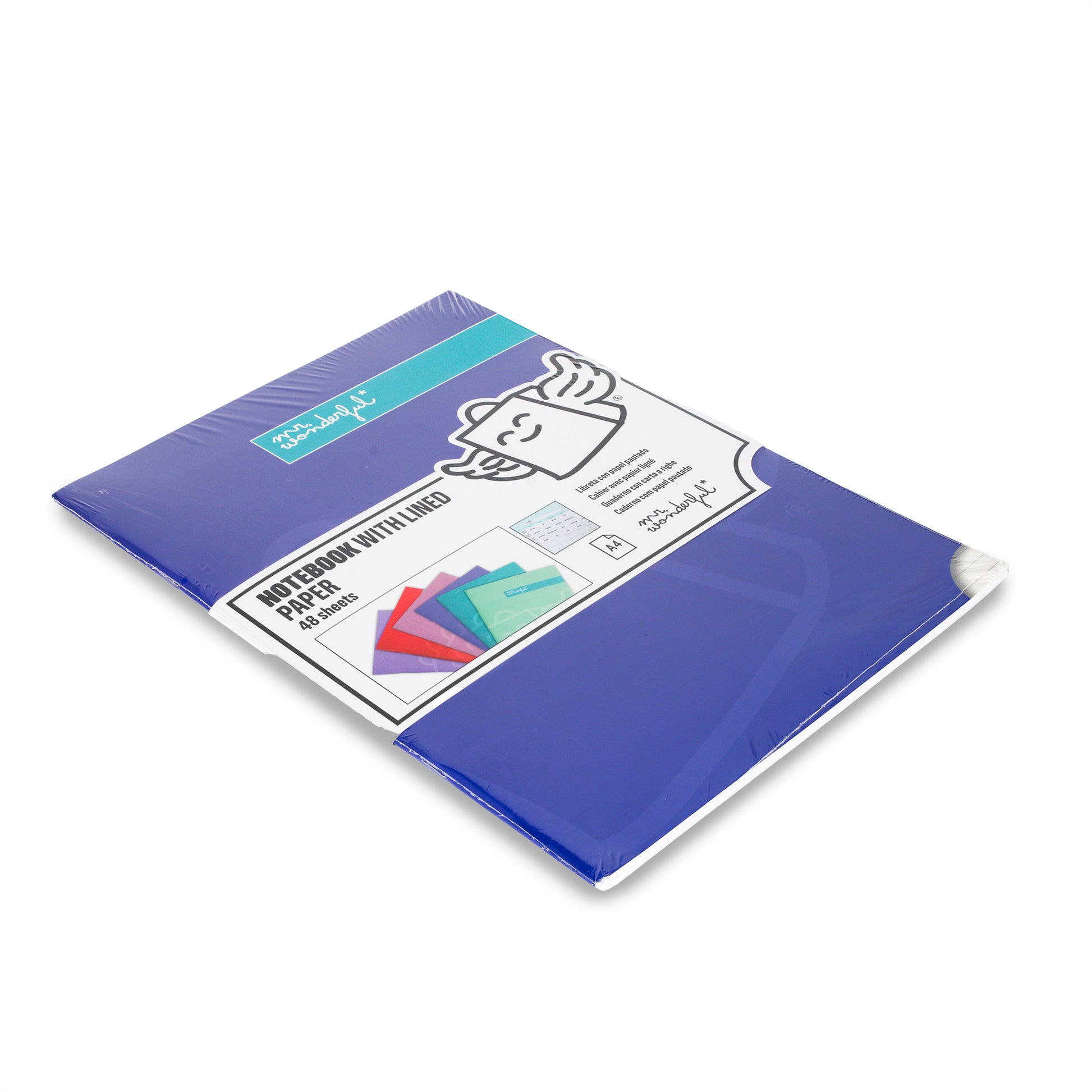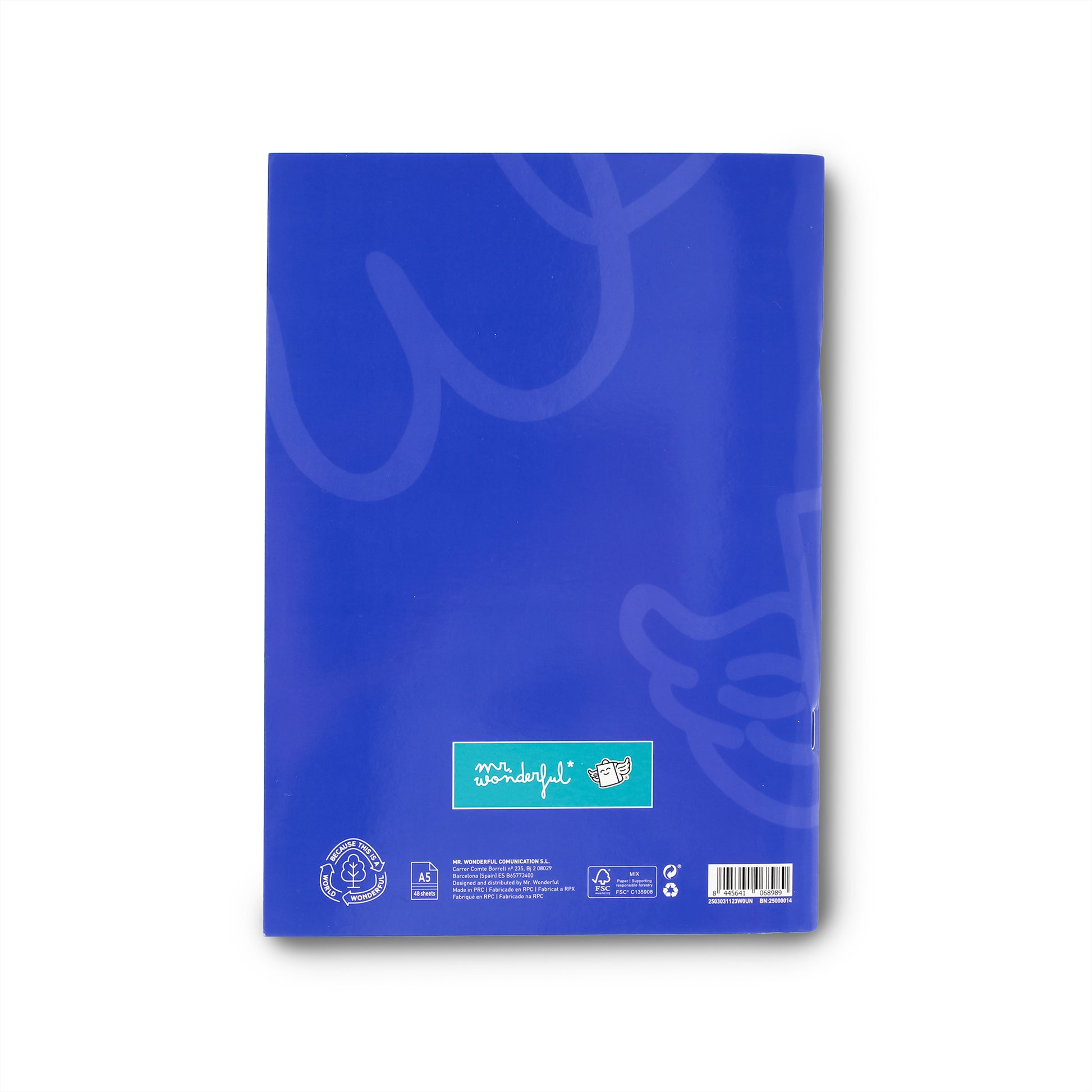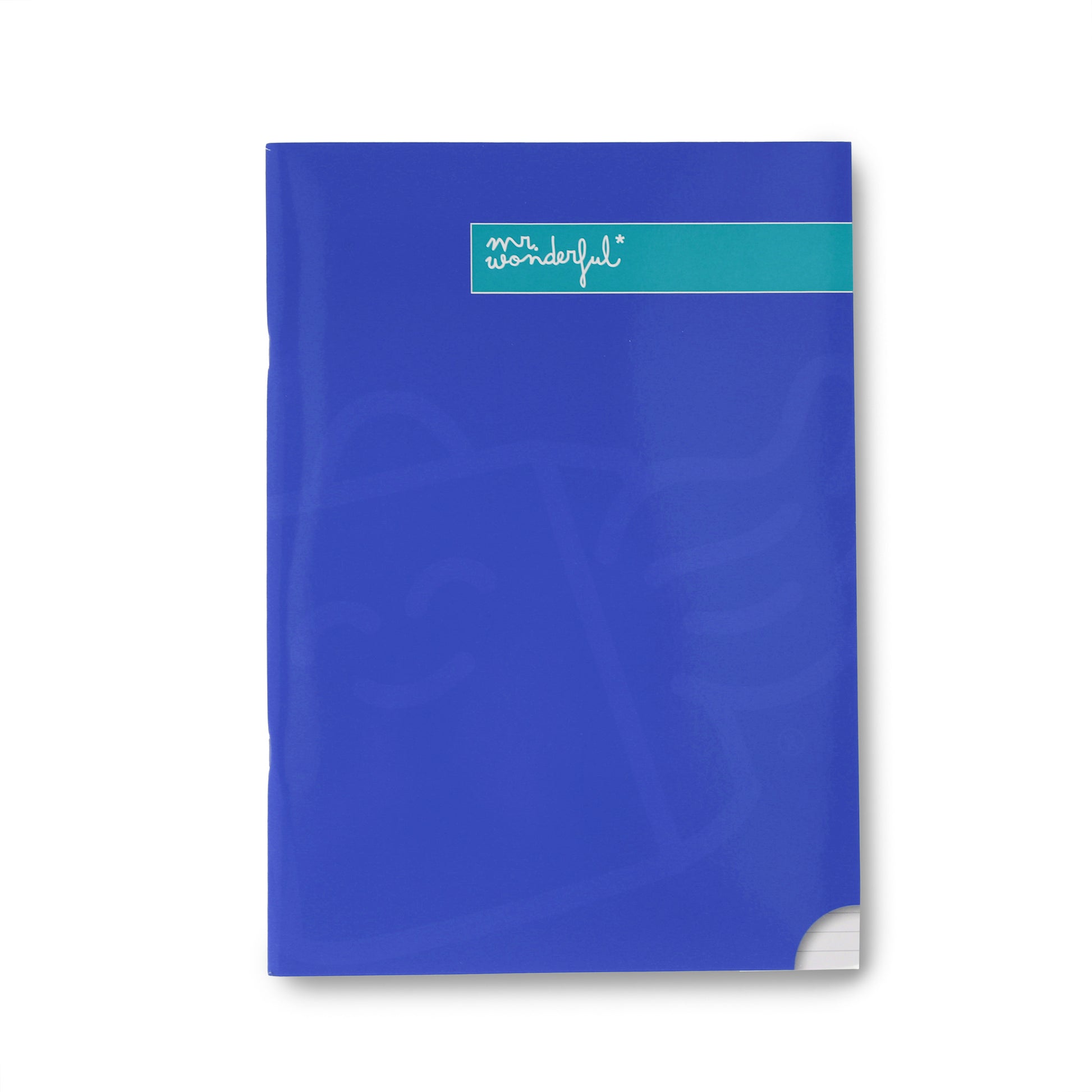 Libreta A5 con tapa blanda y encuadernación grapada, con páginas rayadas en su interior.