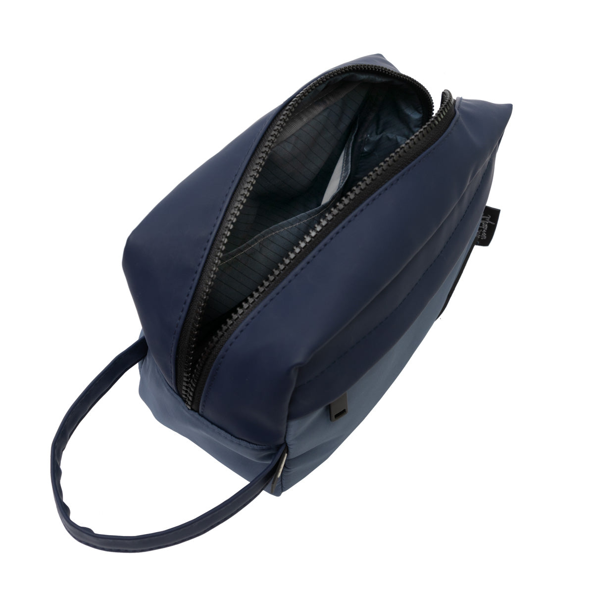 Neceser ideal para viaje, realizado en poliéster y con varios compartimentos, todos ellos con cierre de cremallera.
