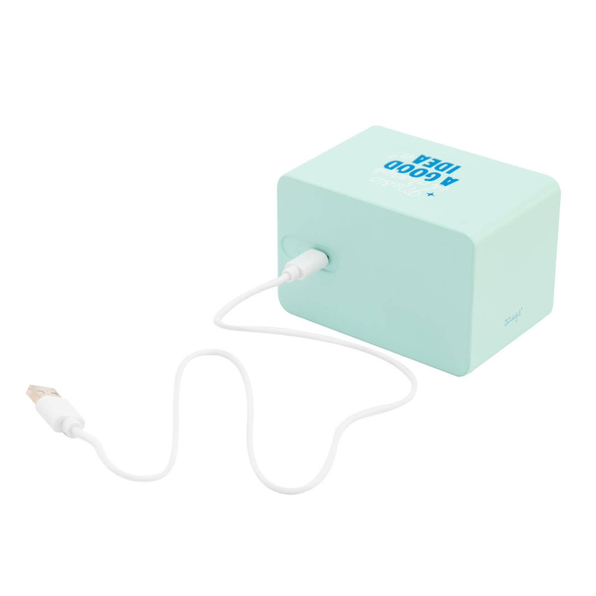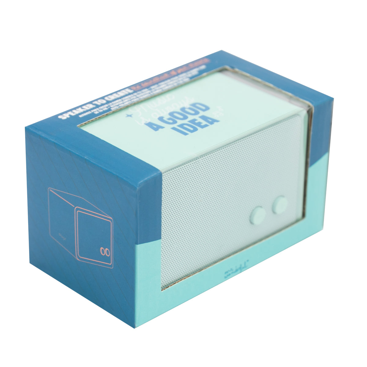 Altavoz cuadrado de pequeño tamaño, con conexión vía Bluetooth (compatible con cualquier dispositivo de conexión Bluetooth V2.1). Cuenta con un divertido mensaje impreso en su parte superior.