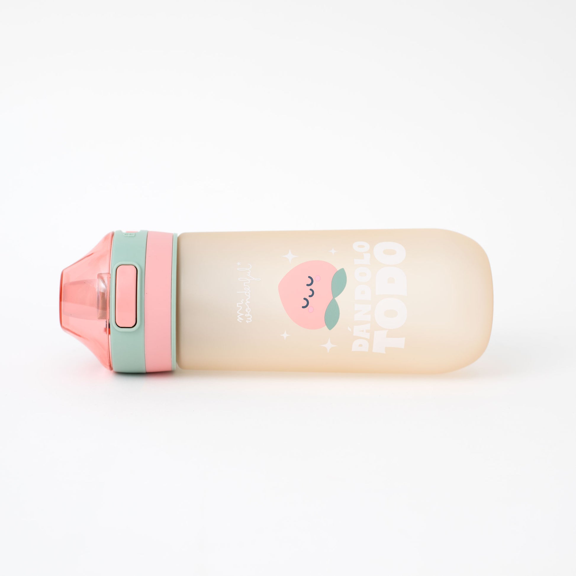 Botella reutilizable realizada en Tritan, un tipo de resina plástica totalmente segura y reciclable, libre de BPA. Capacidad: 600 ml. Con cierre hermético y muy ligera.