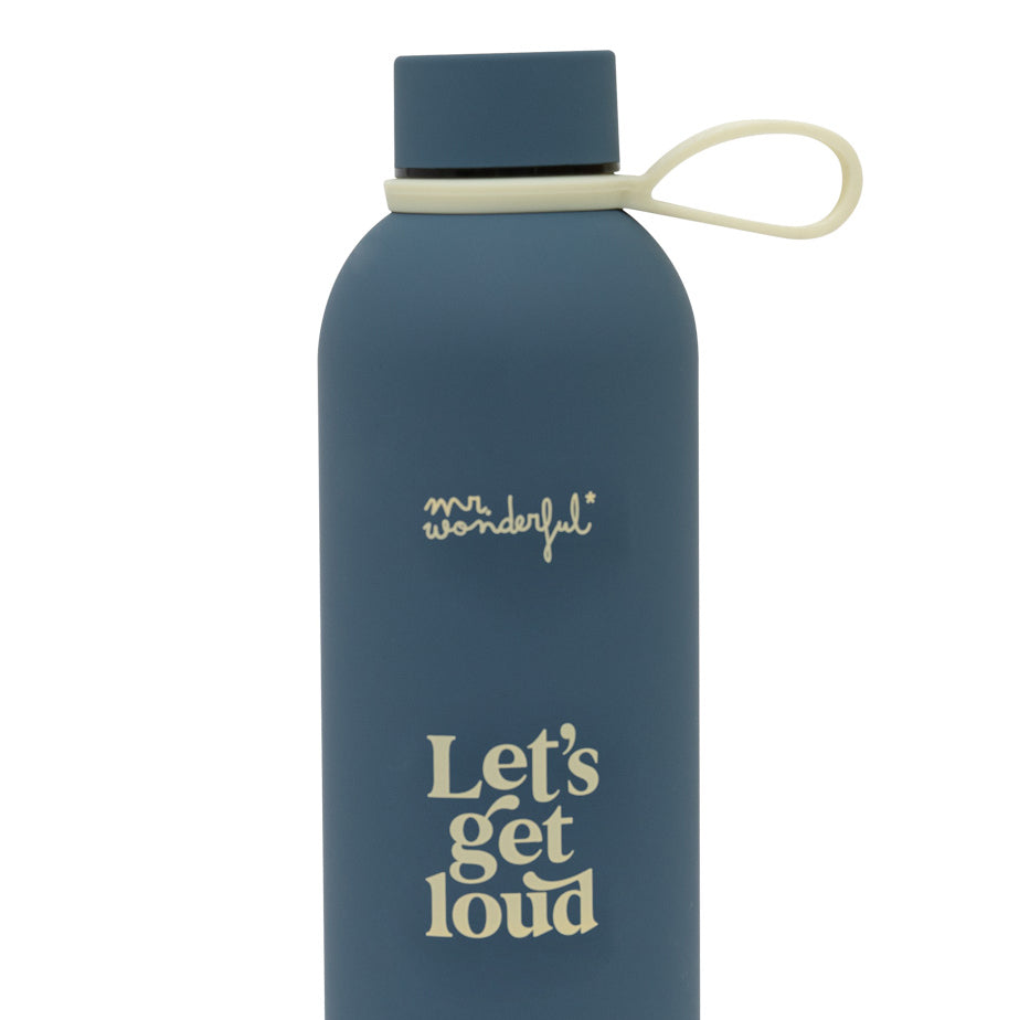 Botella térmica realizada en?acero inoxidable 304 de doble capa. Aguanta las?bebidas frías hasta un?máximo de?24 horas y?calientes hasta 12 horas. Con cierre hermético, inodora y?ligera. Libre de?BPA. Su tapón incorpora una?cuerda, lo que?la?hace más fácil de?transportar. Cuenta con?un?mensaje divertido impreso en?ella. Capacidad: 500 ml.