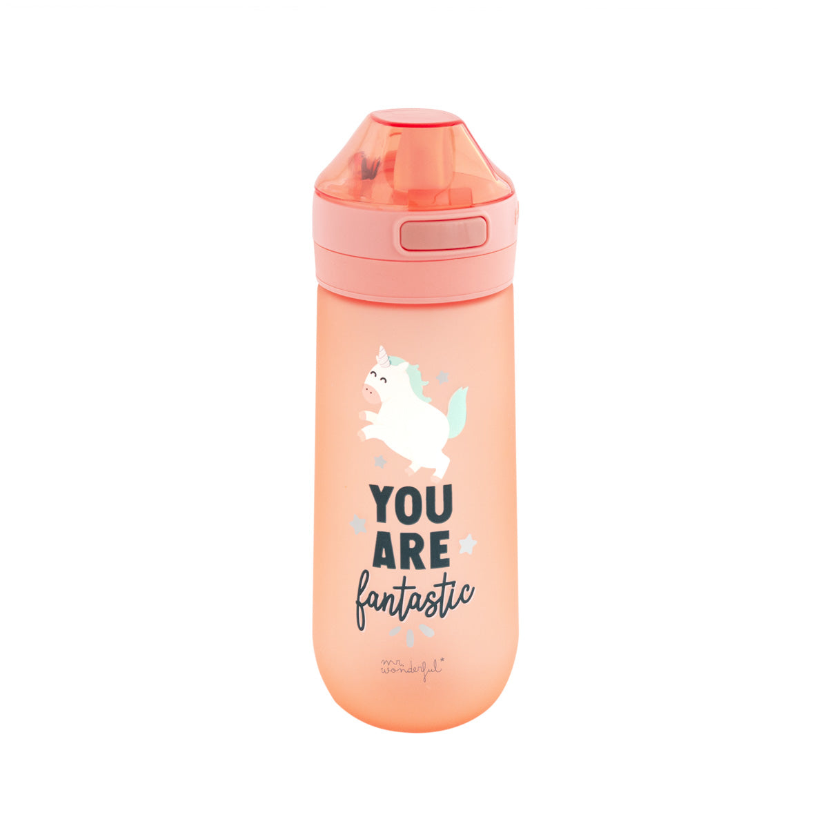 - Botella súper original con mensaje motivacional en inglés y estrellas con tinta holográfica.
