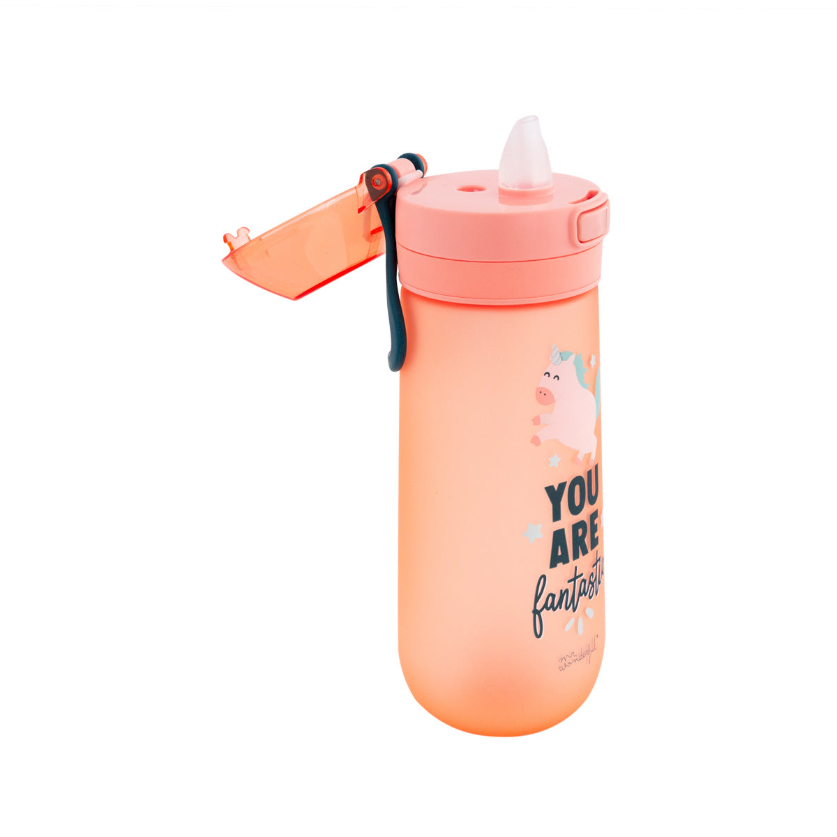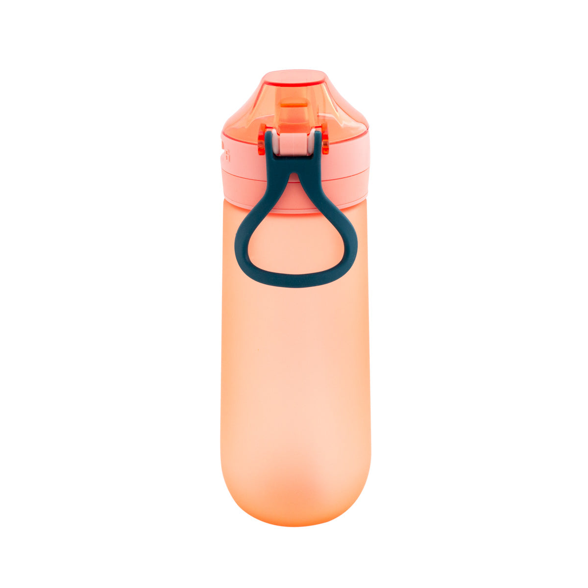 - Botella con asa de silicona, cierre con seguro para evitar que la tapa se abra fácilmente, tapa con botón.