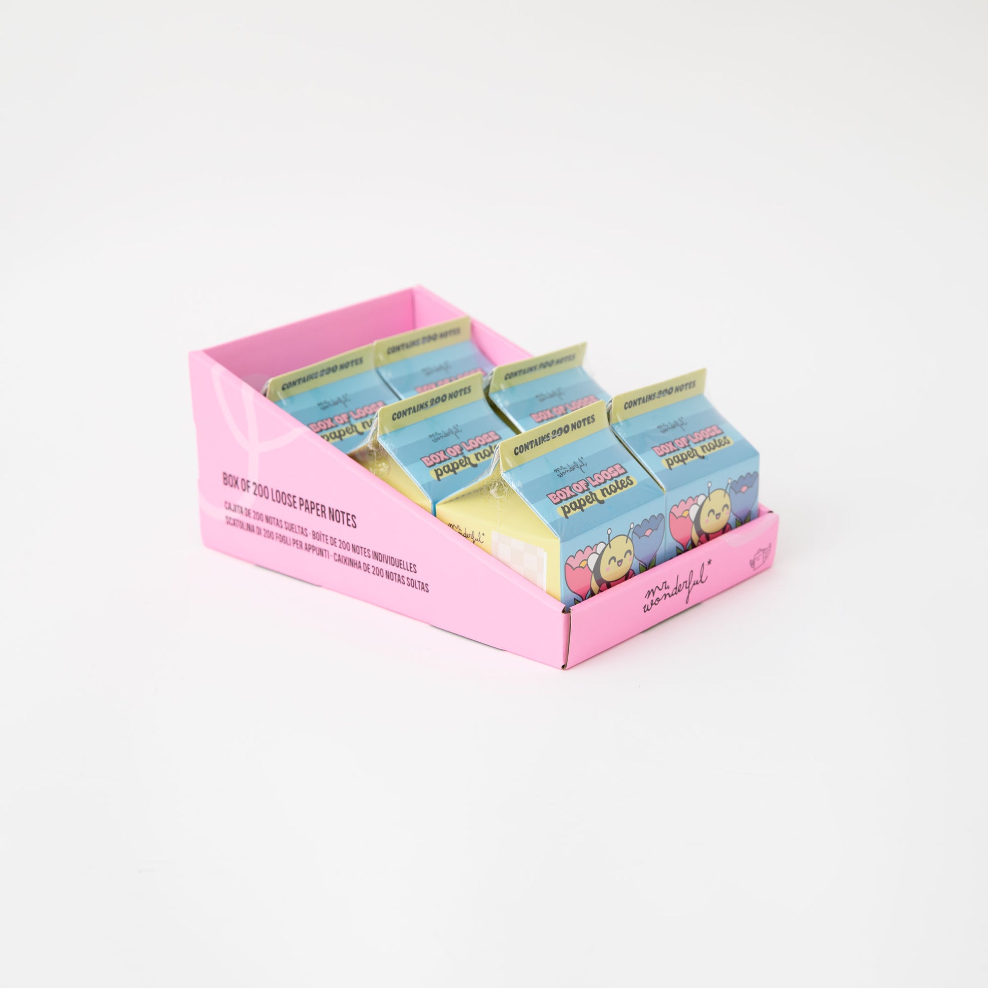 Esta adorable cajita de notitas Mr. Wonderful es justo lo que necesitas para dejar mensajes bonitos, recordar anécdotas divertidas o apuntar ideas brillantes. Incluye 4 diseños diferentes llenos de color y buen rollo, ideales para alegrar cualquier día con una frase inesperada o una nota especial.