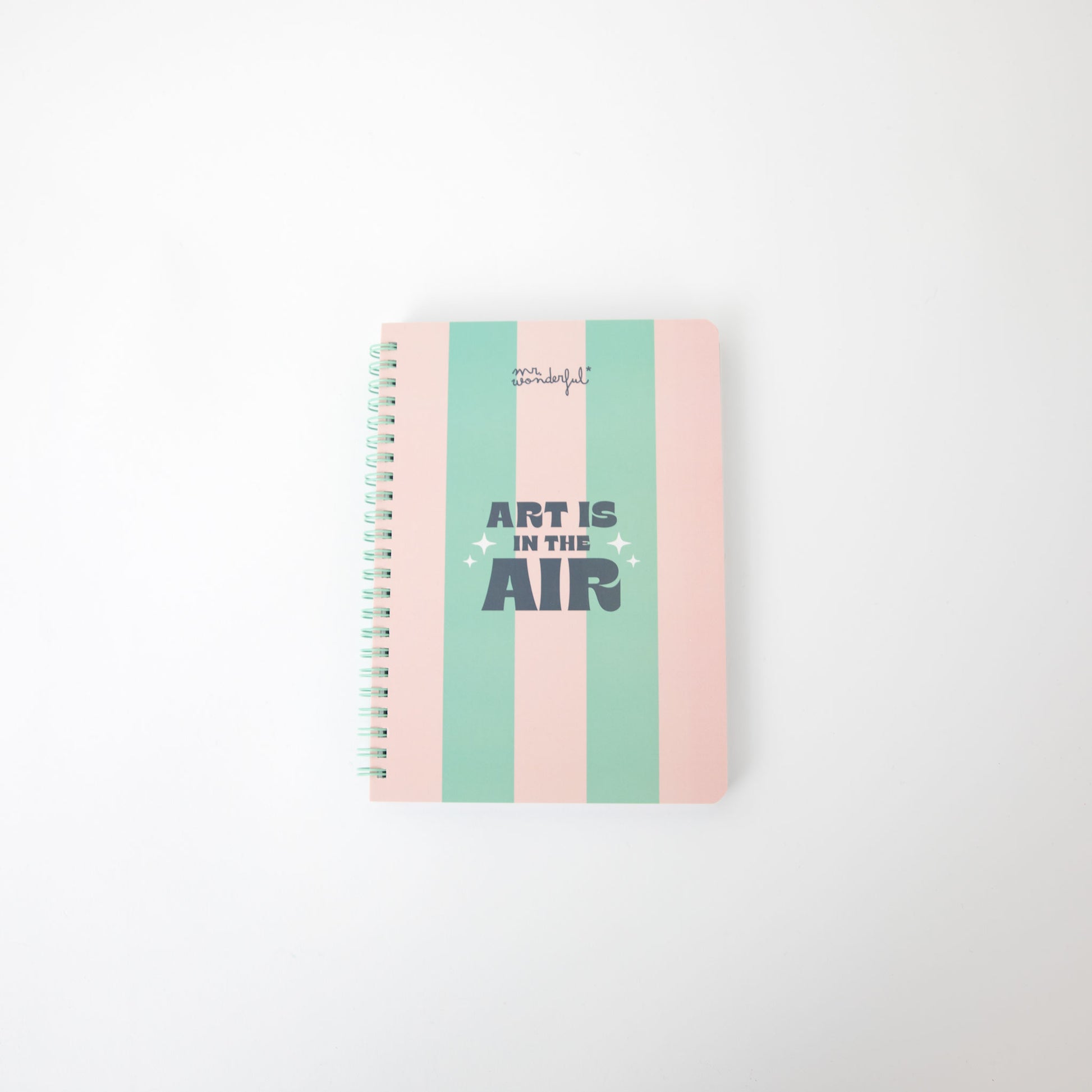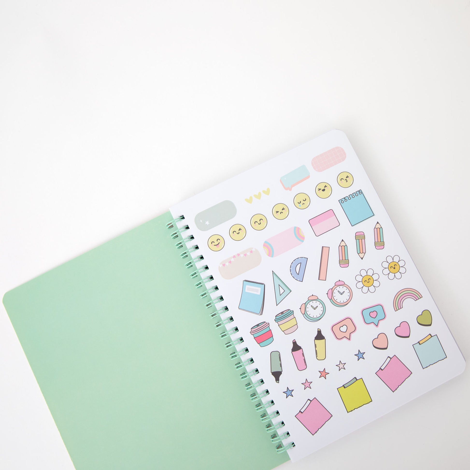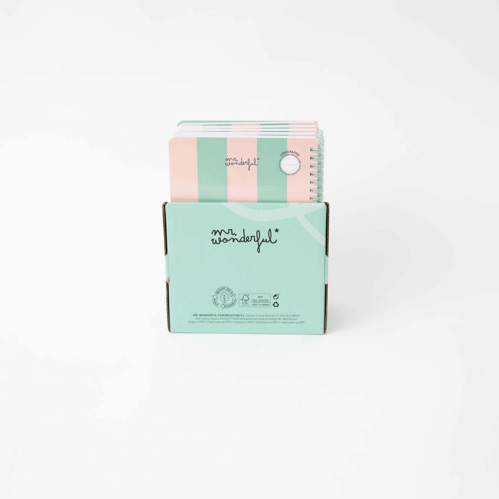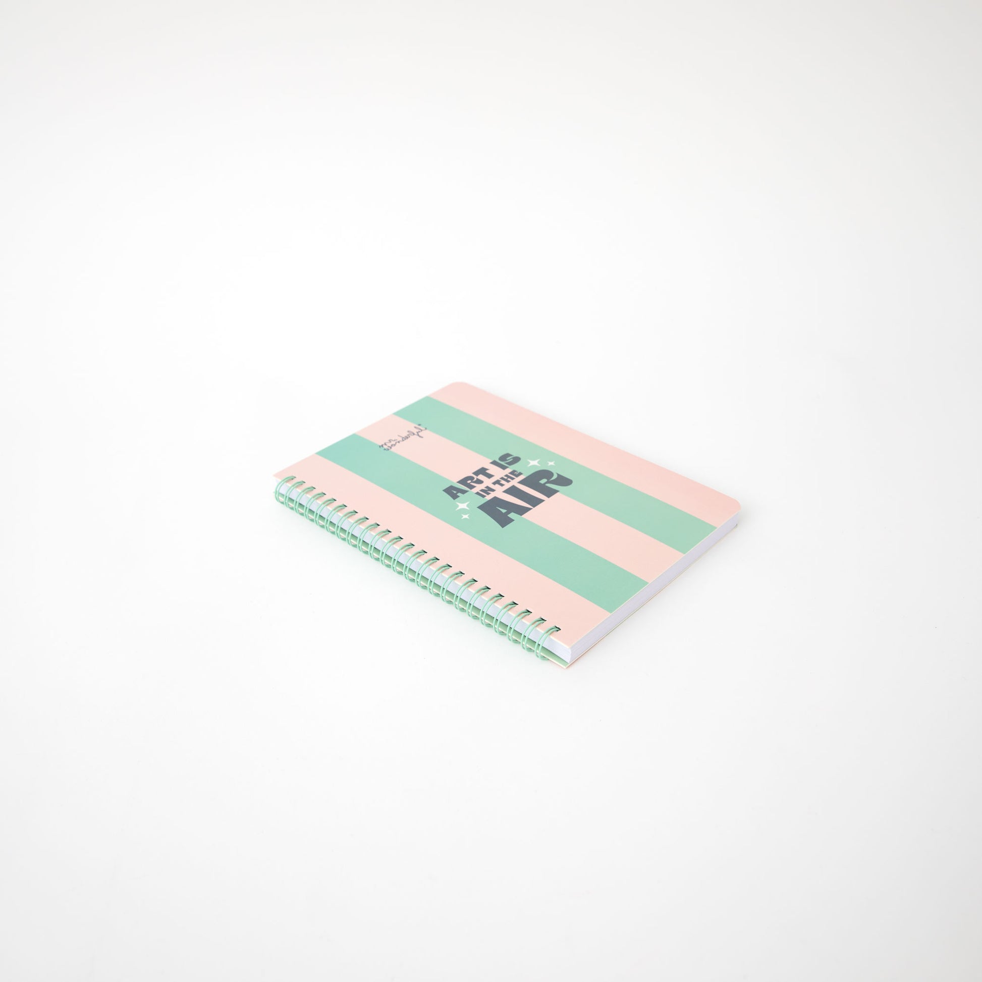Caderno tamanho A5 com encadernação espiral e capa dura. 160 páginas pautadas de 90gsm, com certificação FSC, garantindo que o papel provém de florestas geridas de forma responsável.