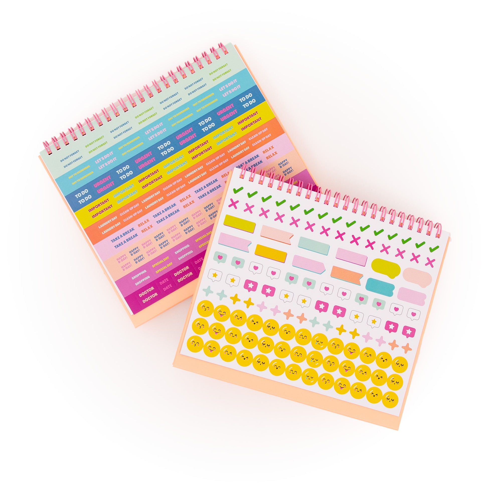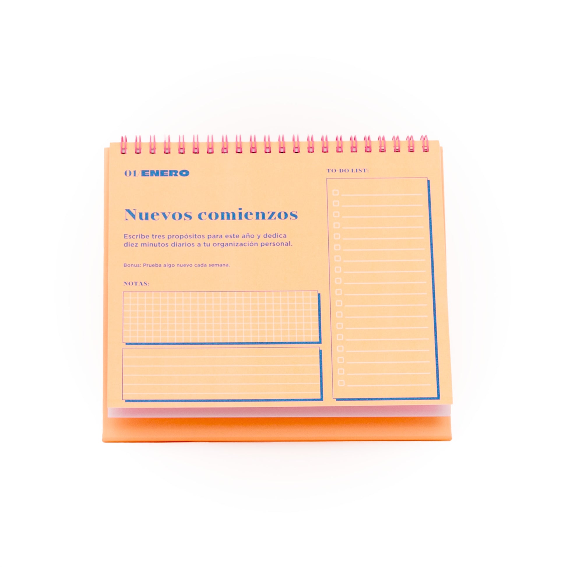 Calendario de sobremesa, con un reto para cada uno de los meses del año. Incluye también 2 hojas de pegatinas, 1 bloc de notas adhesivas y 7 blocs de marcapáginas adhesivos.
