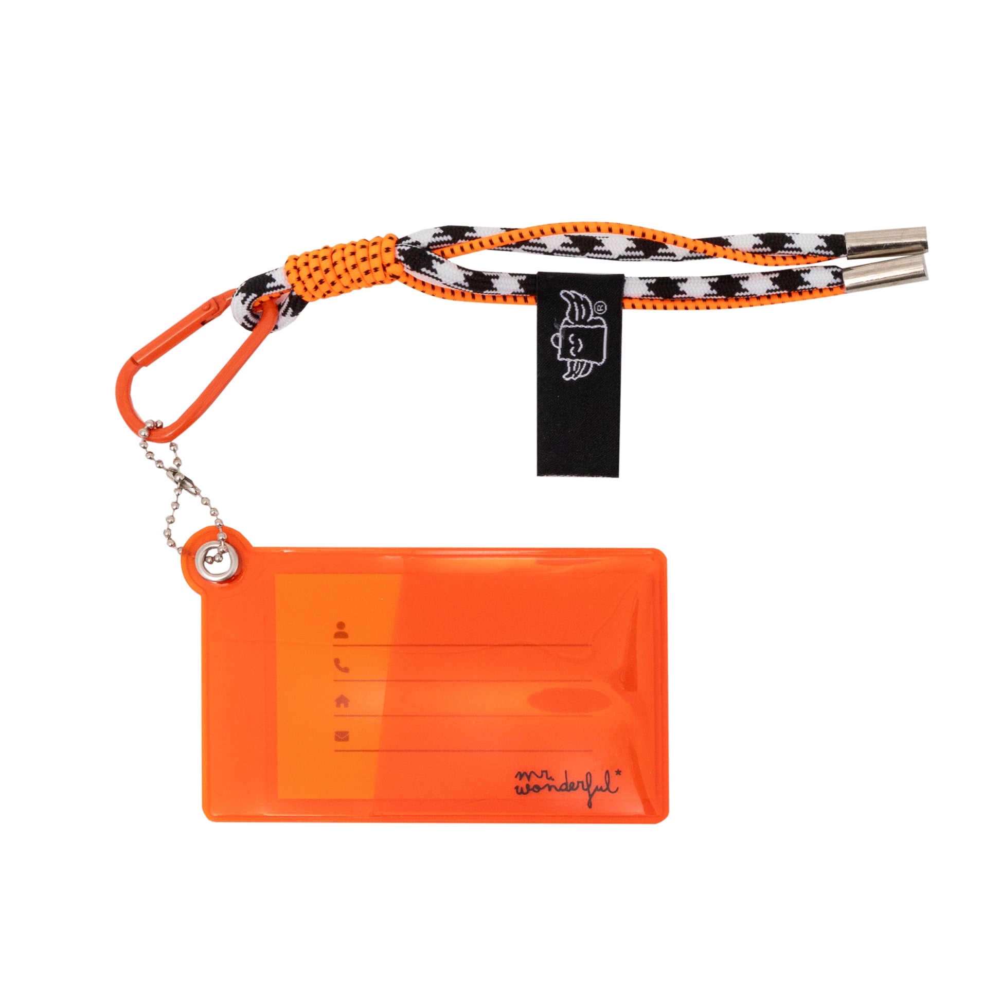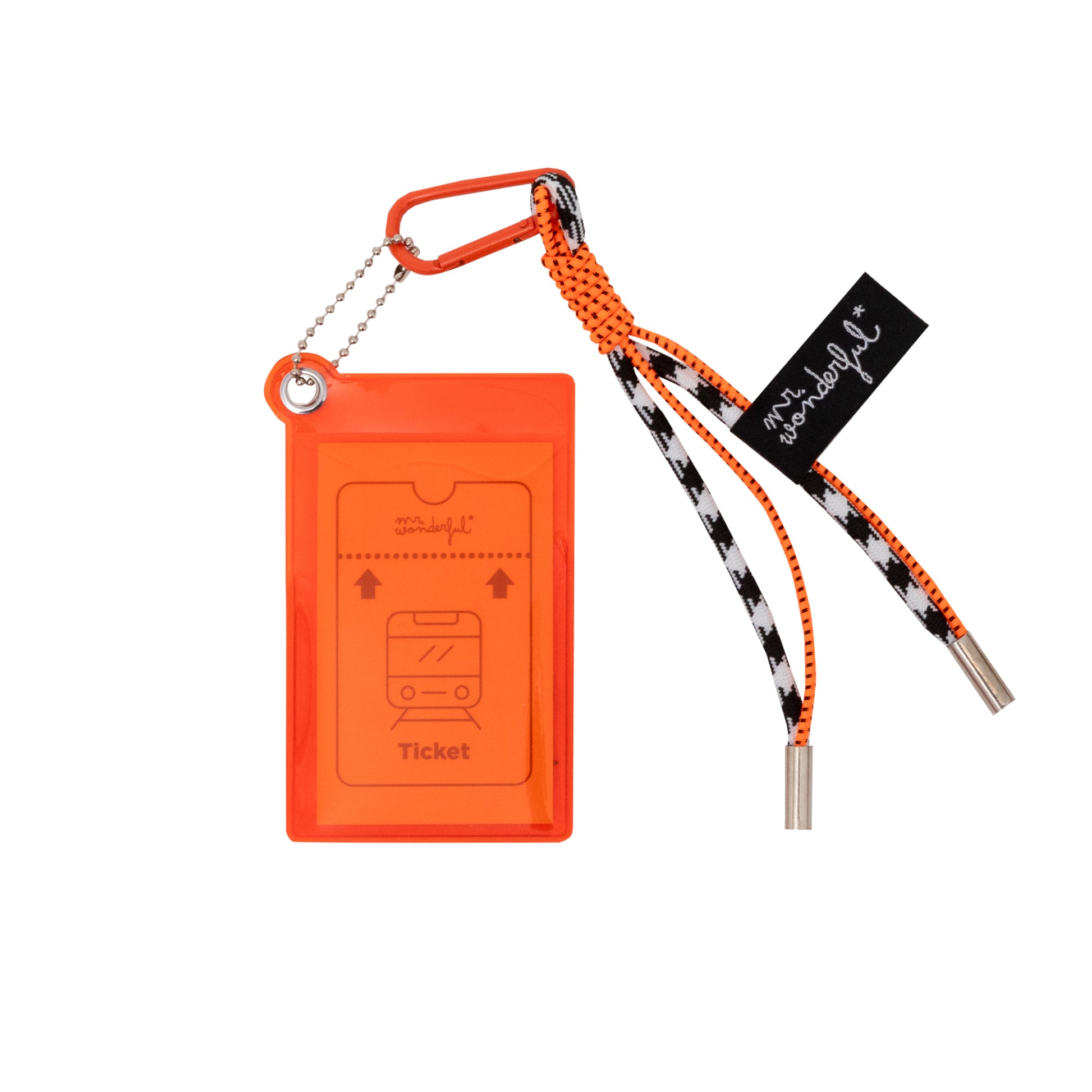 Funda de plástico transparente en color naranja, ideal para llevar en ella los títulos de transporte y otras tarjetas. Cuenta con un divertido enganche en forma de mosquetón, perfecto para colgarlo de la mochila, por ejemplo, y tenerlo siempre a mano. Como accesorio decorativo, incorpora un moderno cordón grueso que hace un gran nudo, lo que le confiere originalidad.