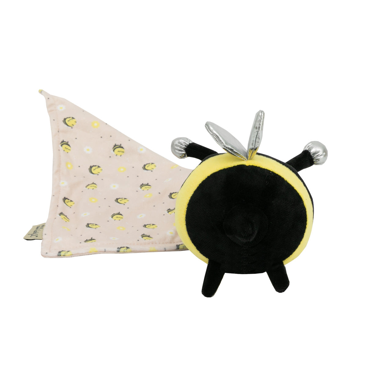 Peluche de confort tipo dudú, un tipo de peluche de confort especialmente pensado para los más pequeños, que consiste en un muñequito de peluche, en este caso nuestra bonita abeja, que sostiene un trapito pequeño y suave, con estampado también de abejas, que consigue que el bebé se calme y pueda conciliar el sueño. Realizado en poliéster. Medidas del trapito: 25 x 25 cm. Medidas del peluche: 9 x 9 x 12 cm.