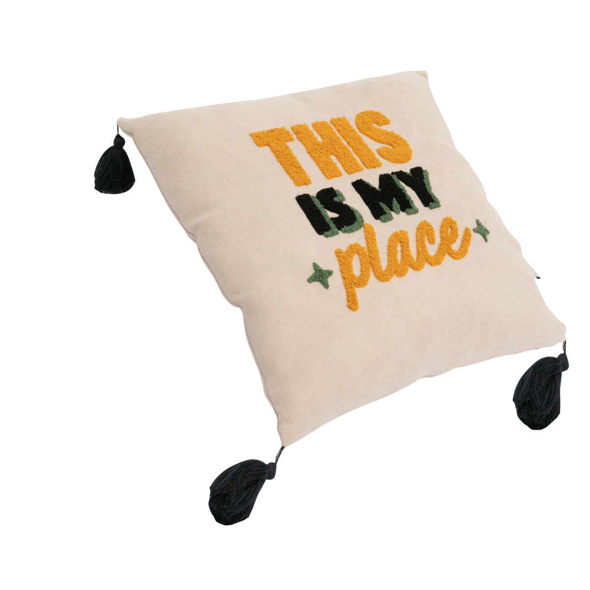 Cojín realizado en algodón, con funda extraíble y con un mensaje bordado.