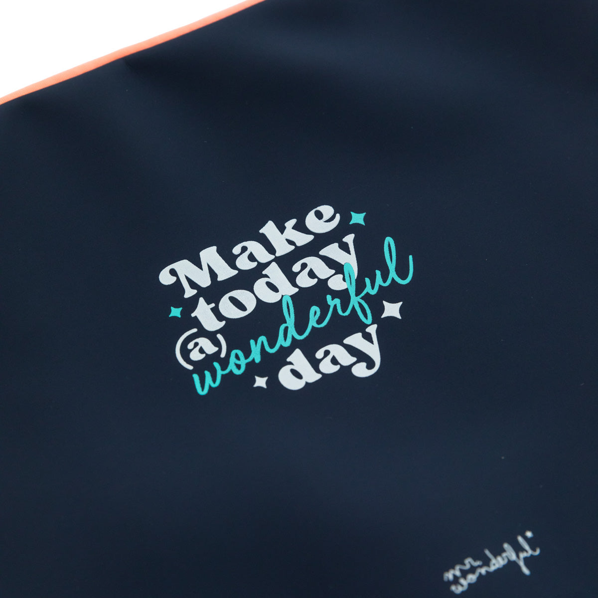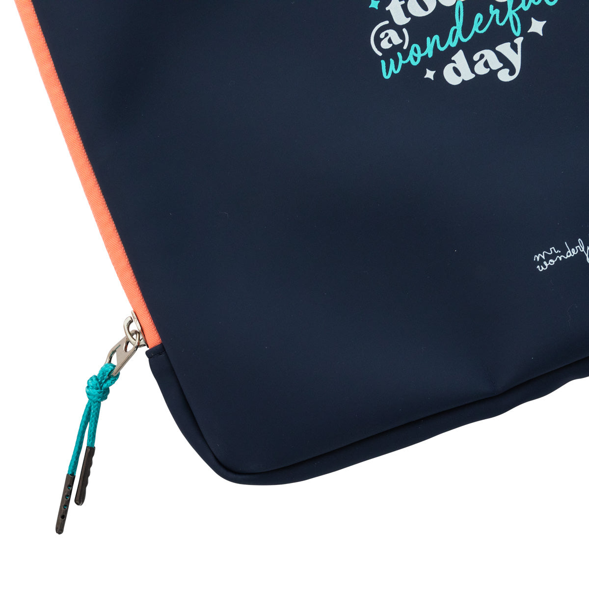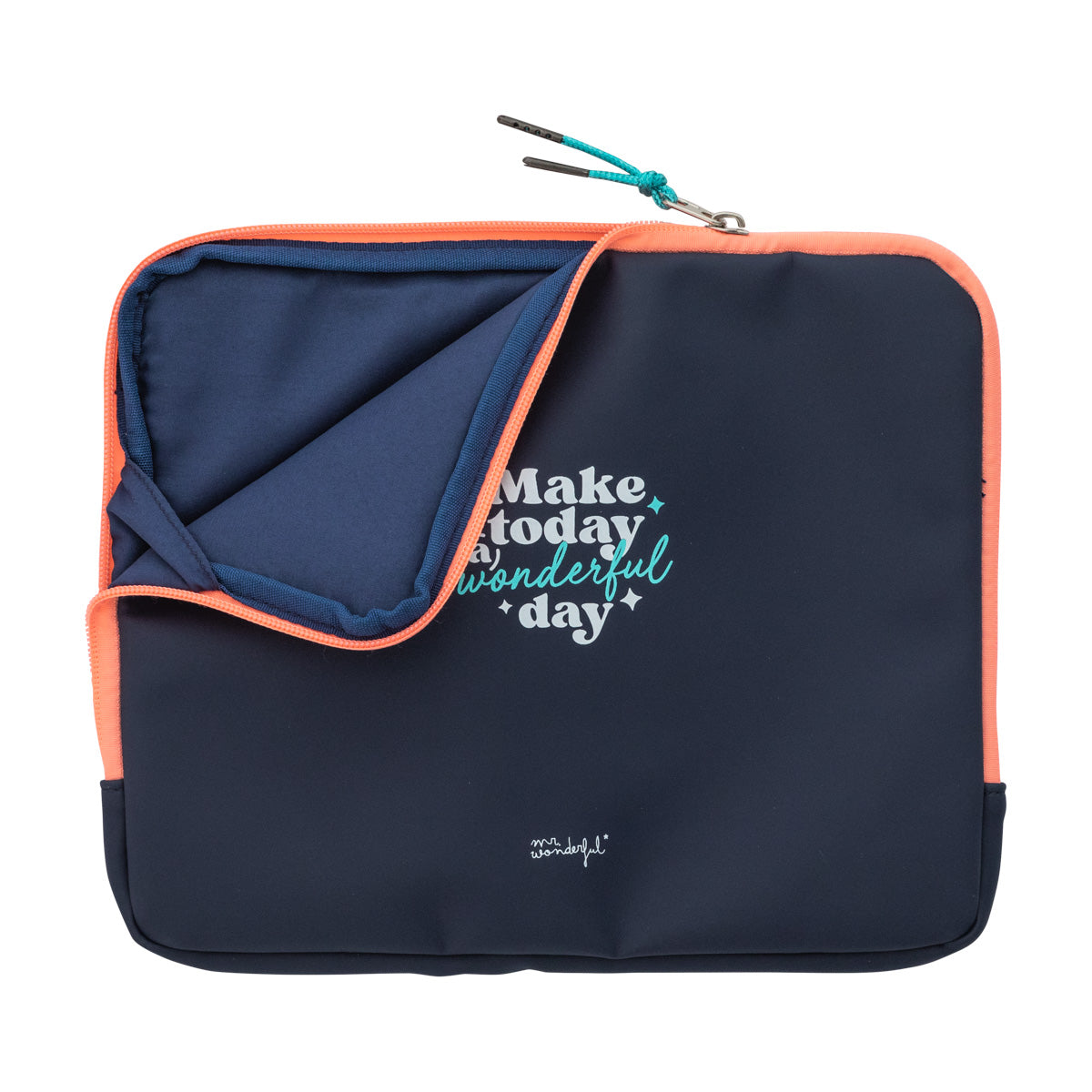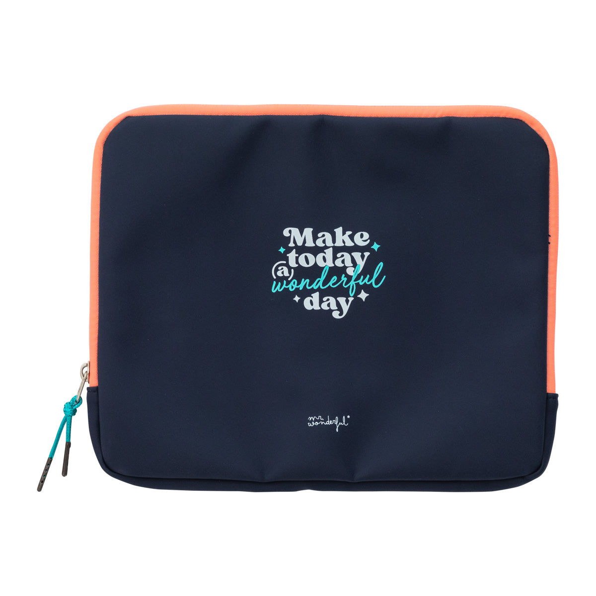 Funda para agenda o portadocumentos, con acabado soft touch y cierre de cremallera. Cuenta con un divertido mensaje en inglés impreso en ella.
