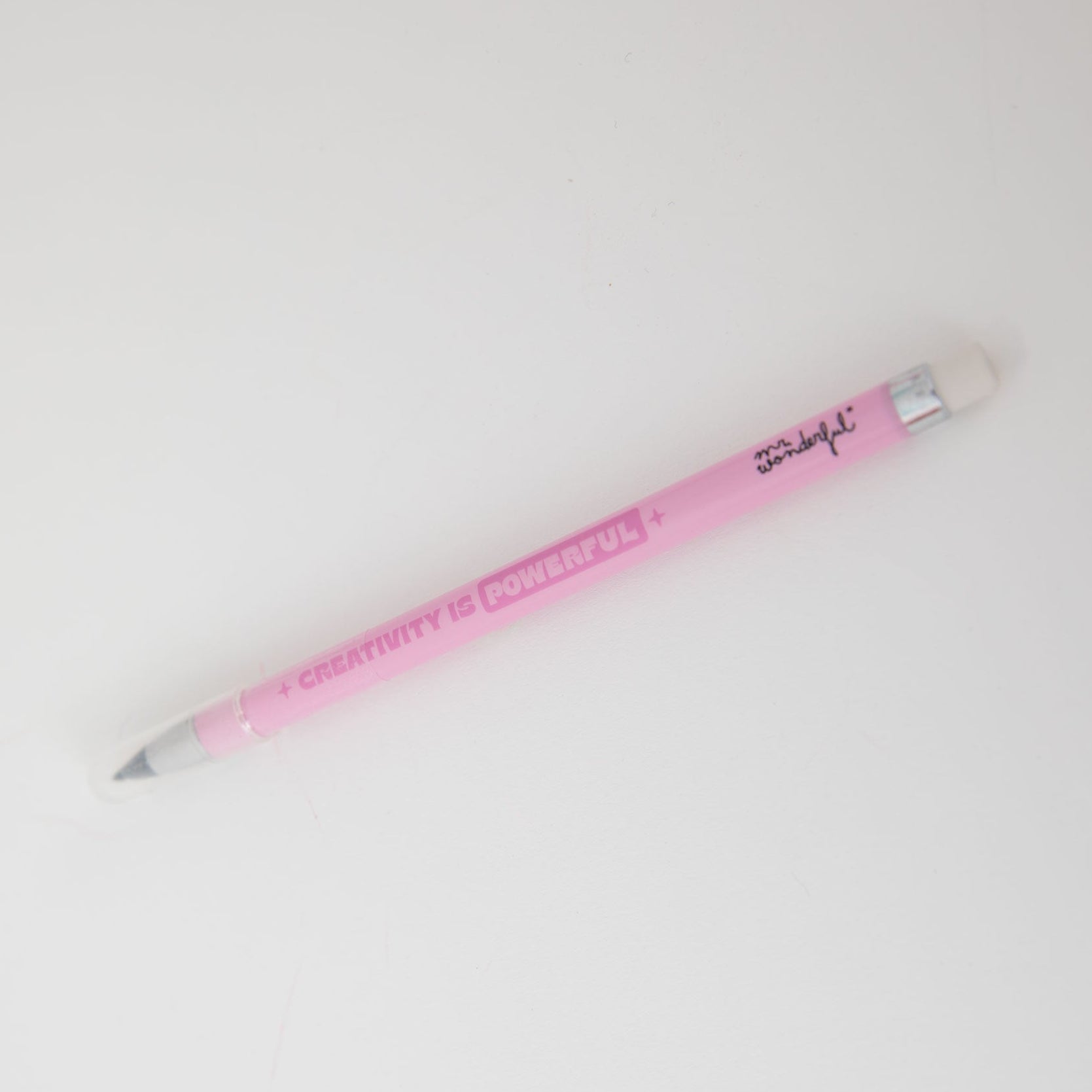 Su punta no está fabricada en grafito, sino que se trata de una aleación de estaño y bismuto que logra que no sea necesario afilarla, que no manche, que no se emborrone al escribir y que, a pesar de ello, se pueda borrar con normalidad.