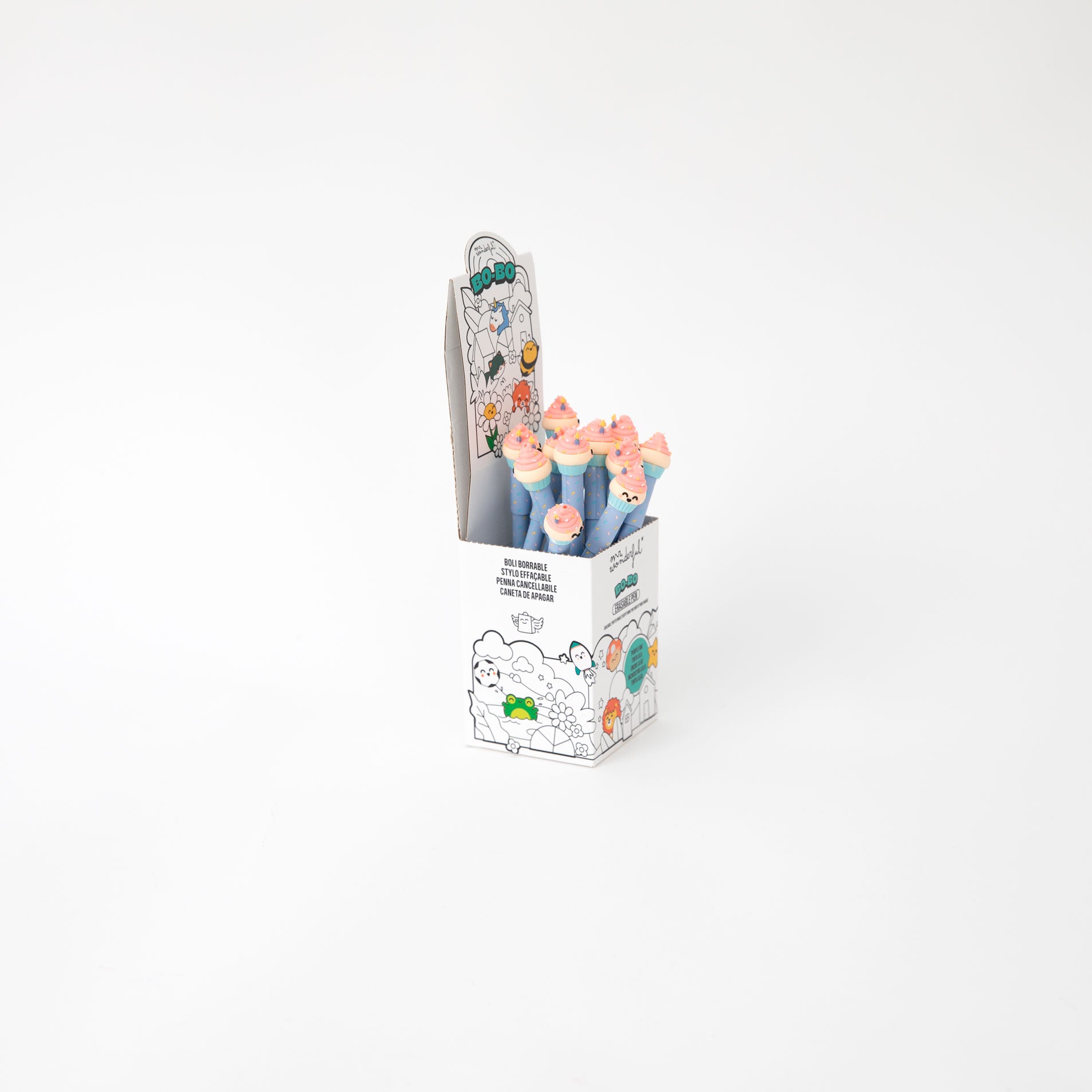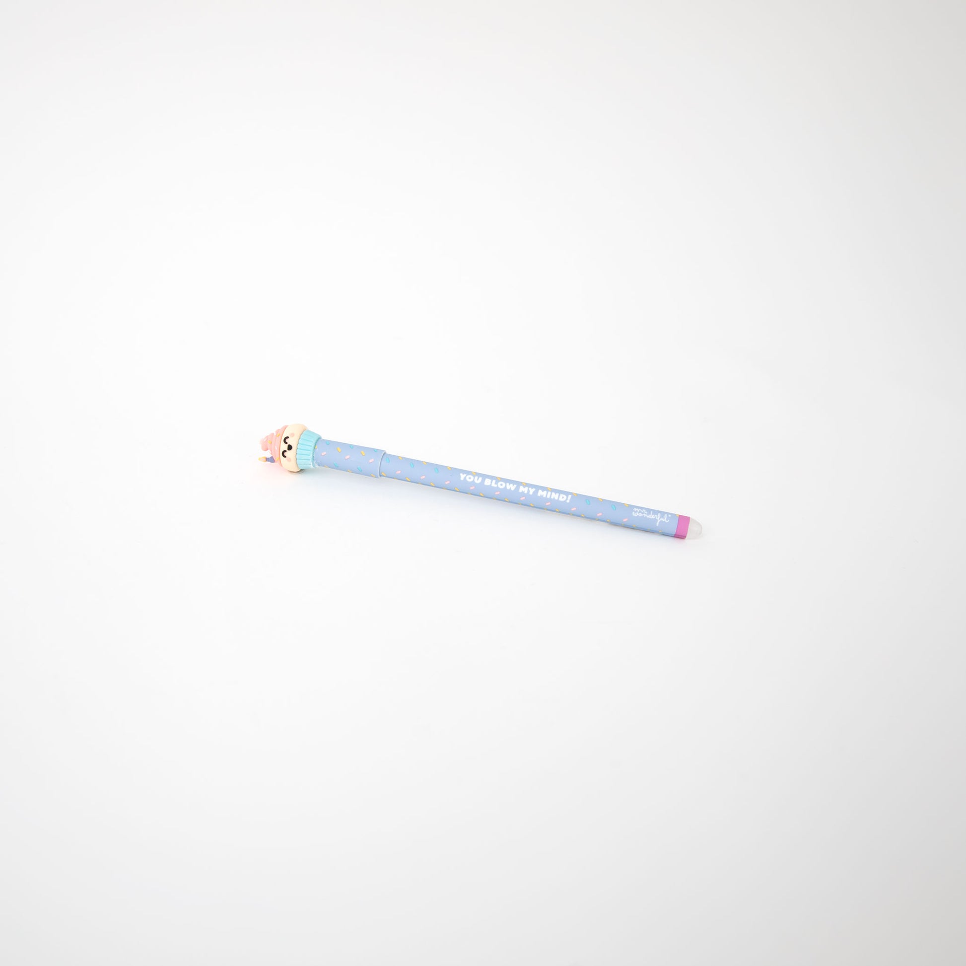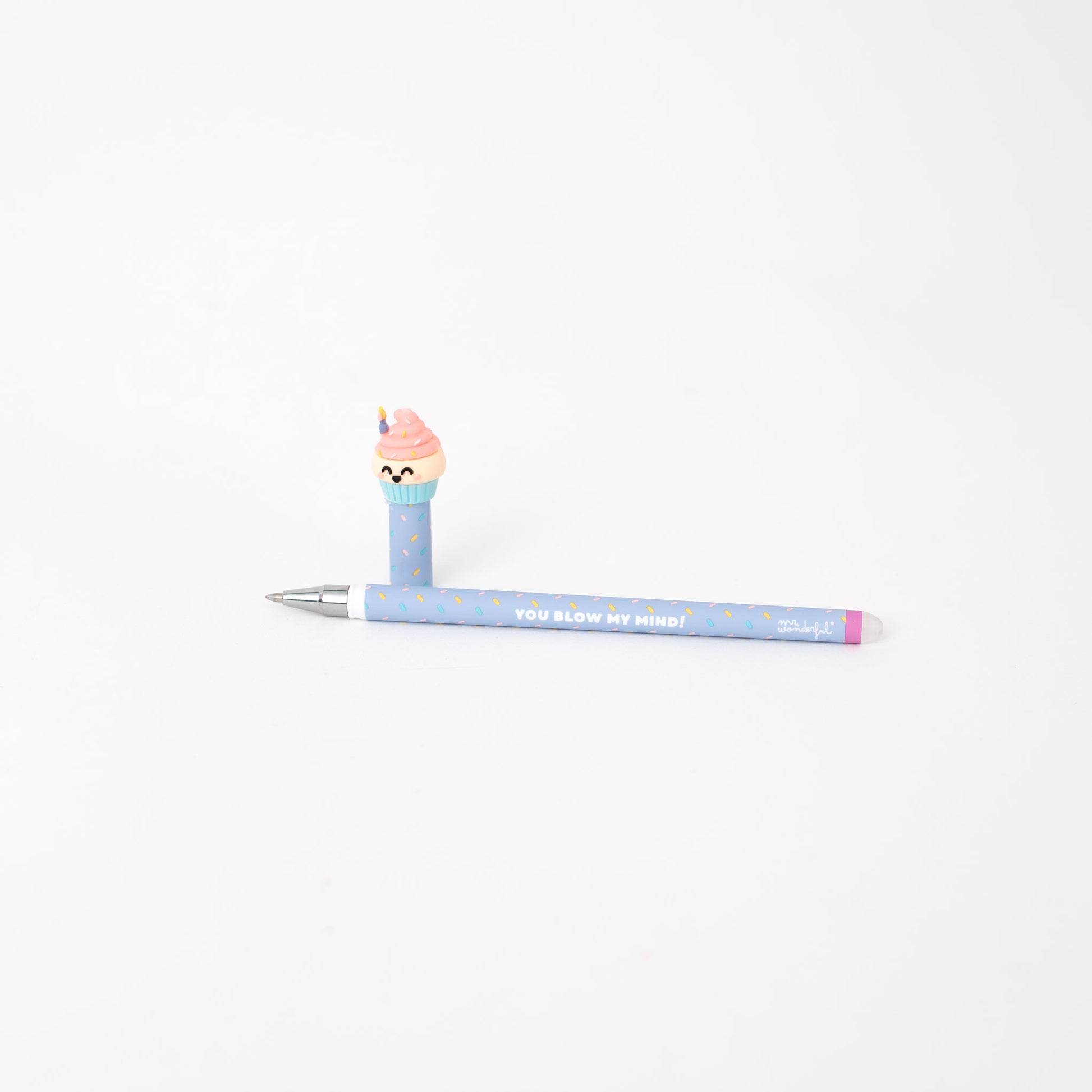 Bolígrafo borrable Bo-Bo con un divertido cupcake Mr. Wonderful en uno de sus extremos.