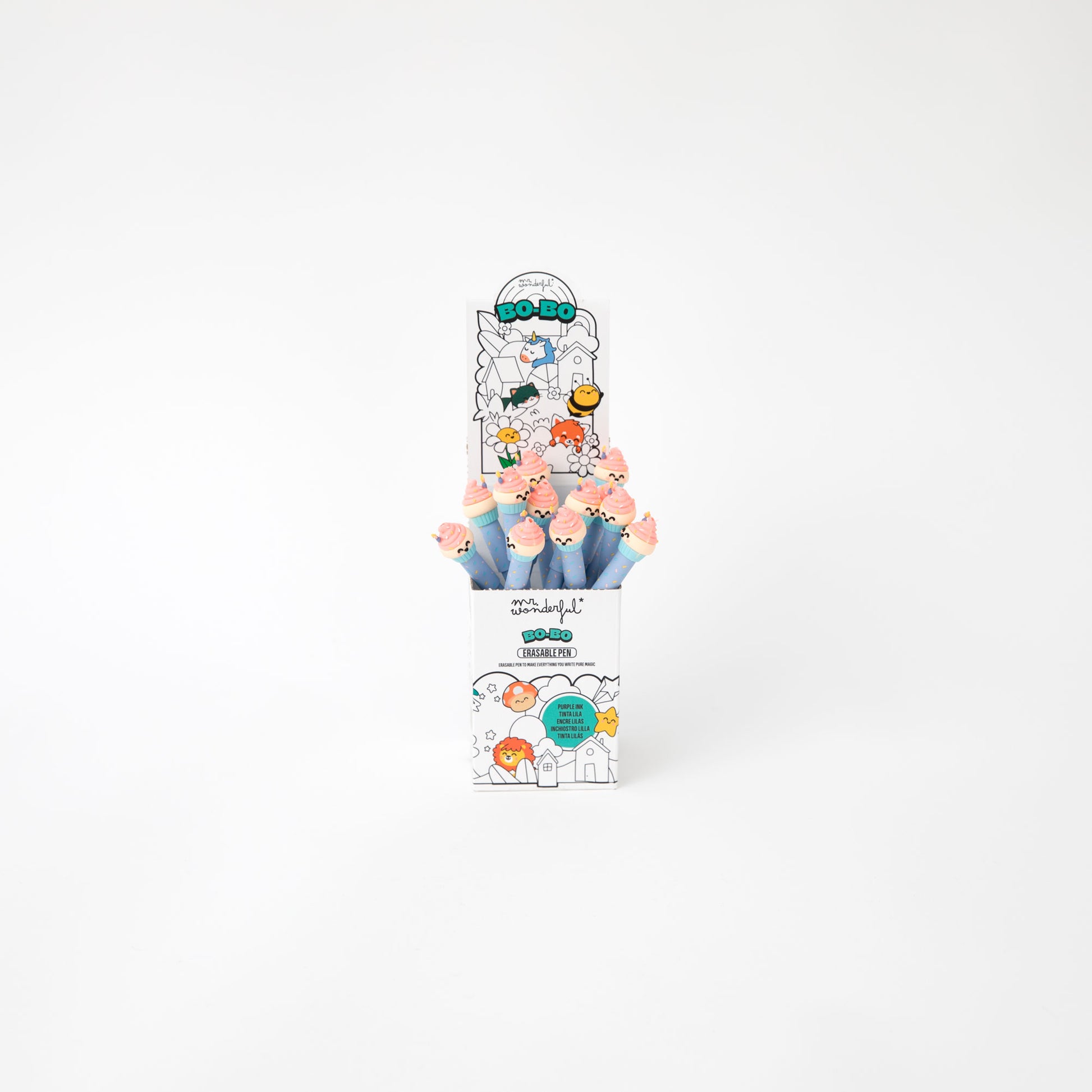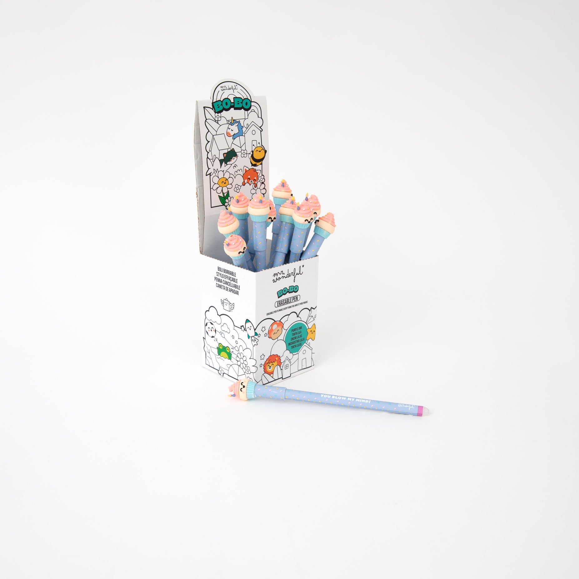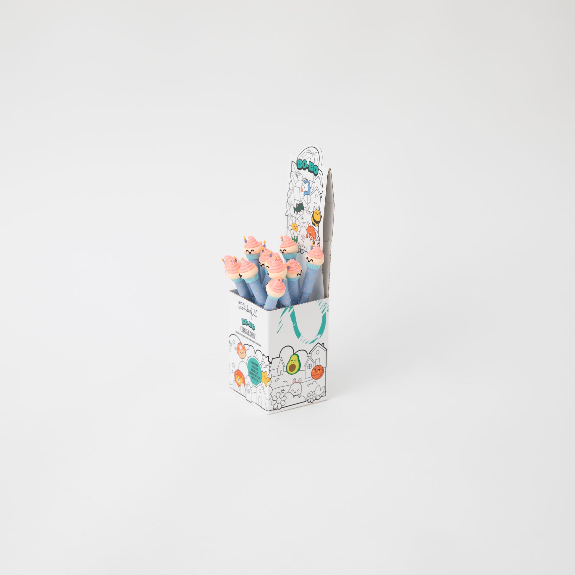 Bolígrafo borrable Bo-Bo con un divertido cupcake Mr. Wonderful en uno de sus extremos.
