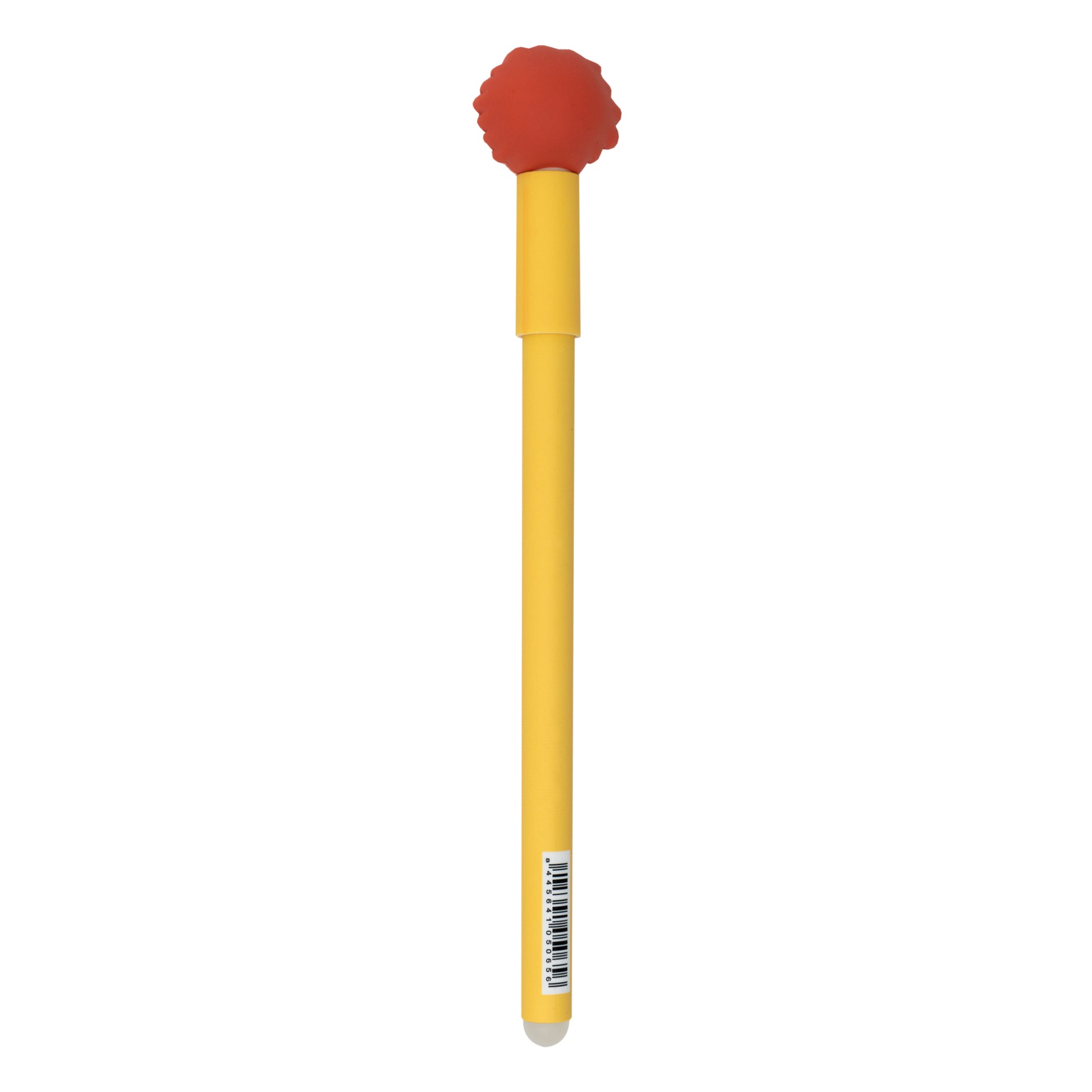 Boli con tinta borrable de color azul y el león Simón en uno de sus extremos.
