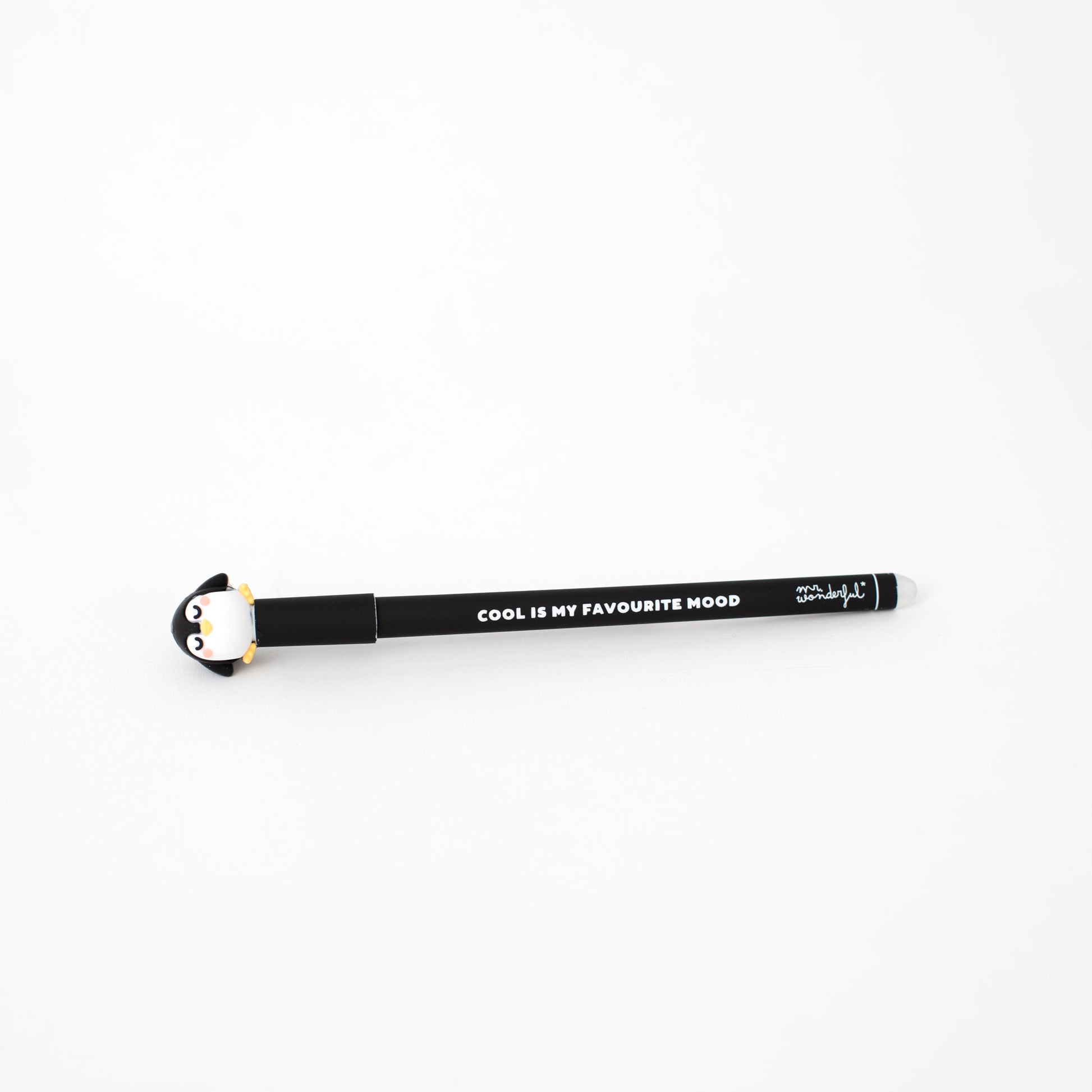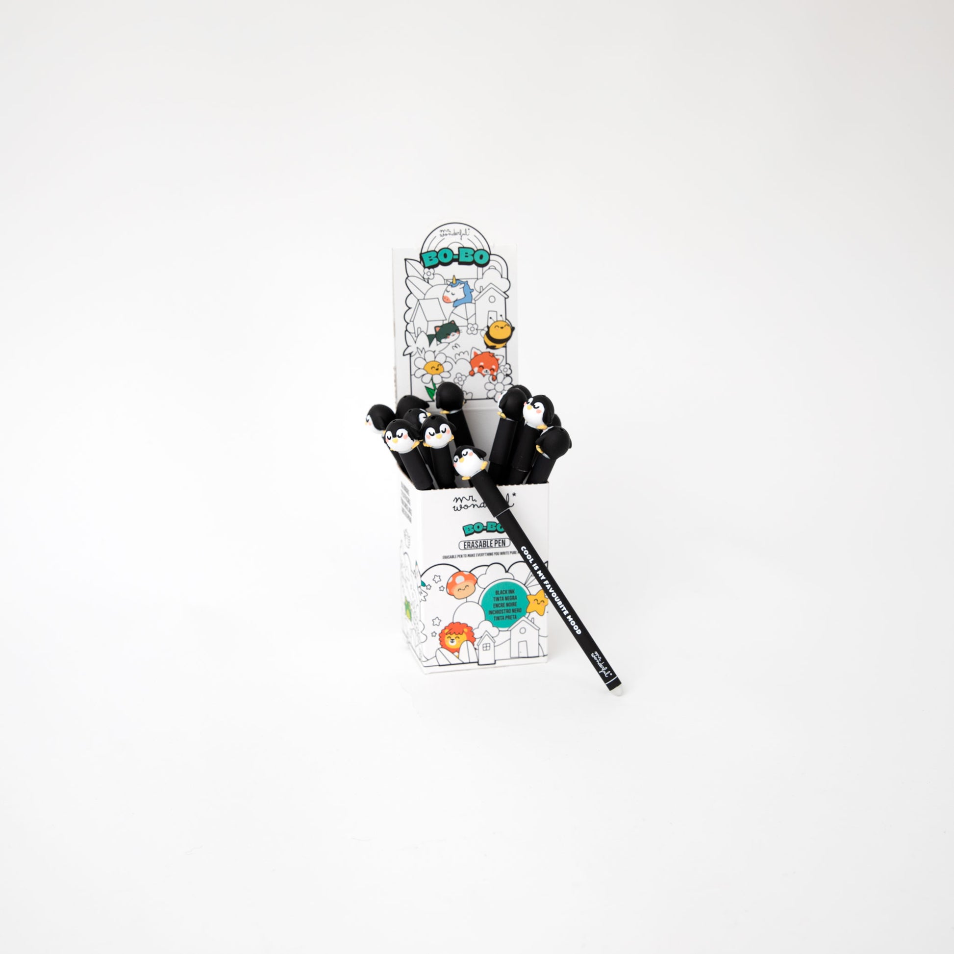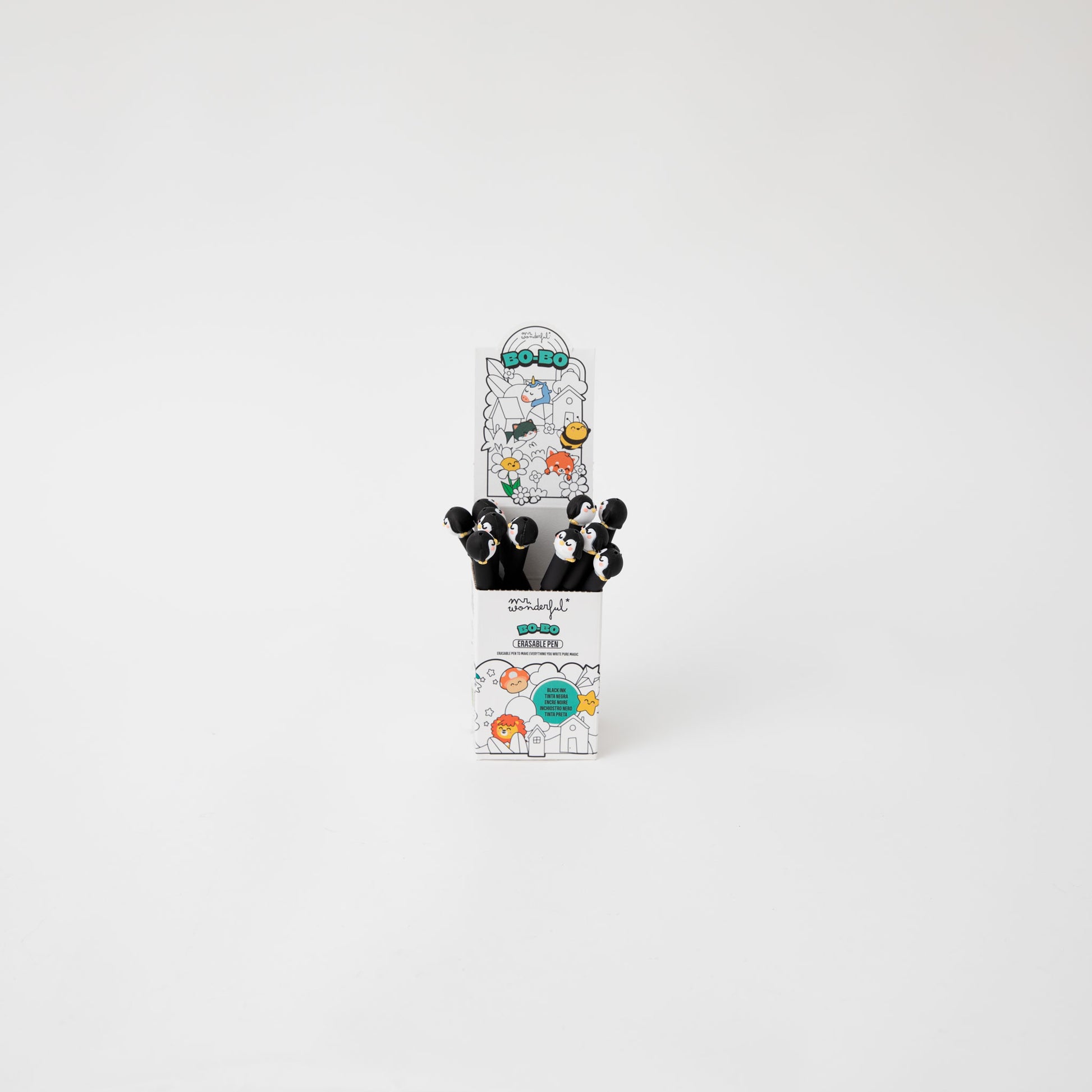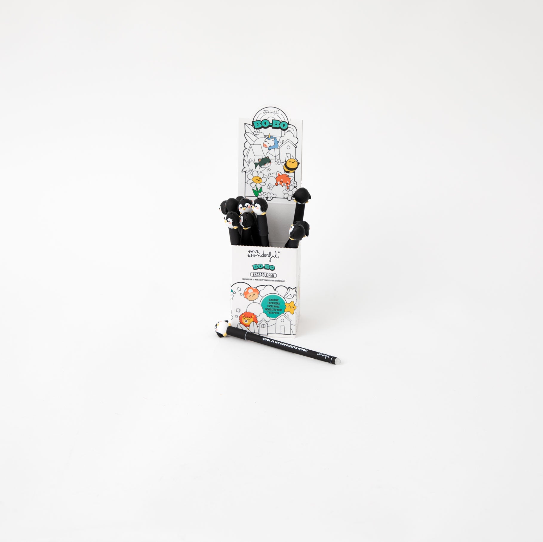 Bolígrafo borrable Bo-Bo con un divertido pingüino Mr. Wonderful en uno de sus extremos.