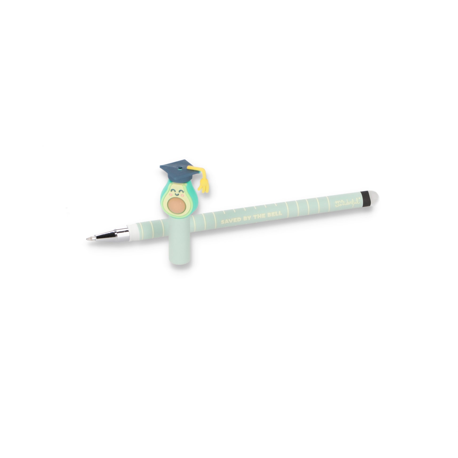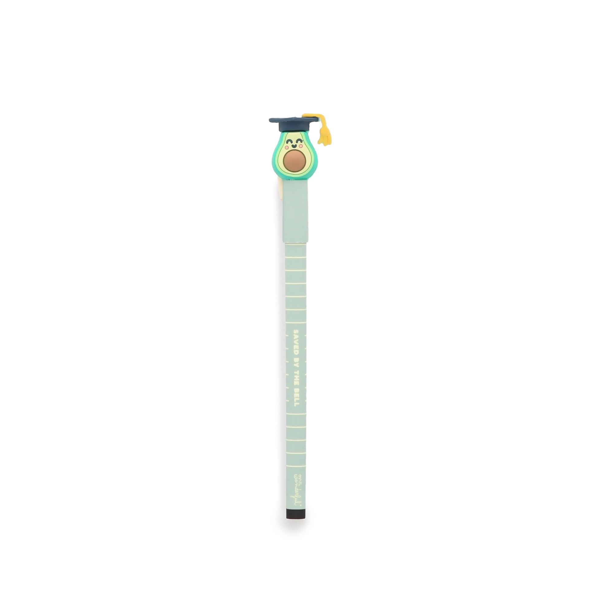 Bolígrafo de tinta borrable con mensaje para profesores o profesoras, con un divertido aguacate en uno de sus extremos. Tinta negra.