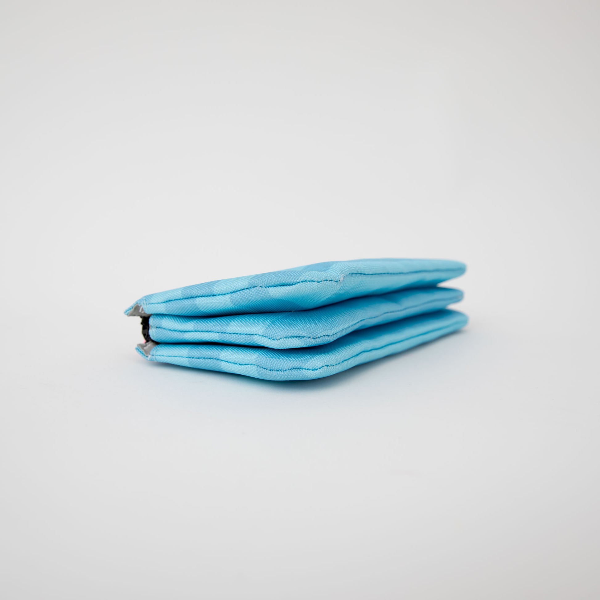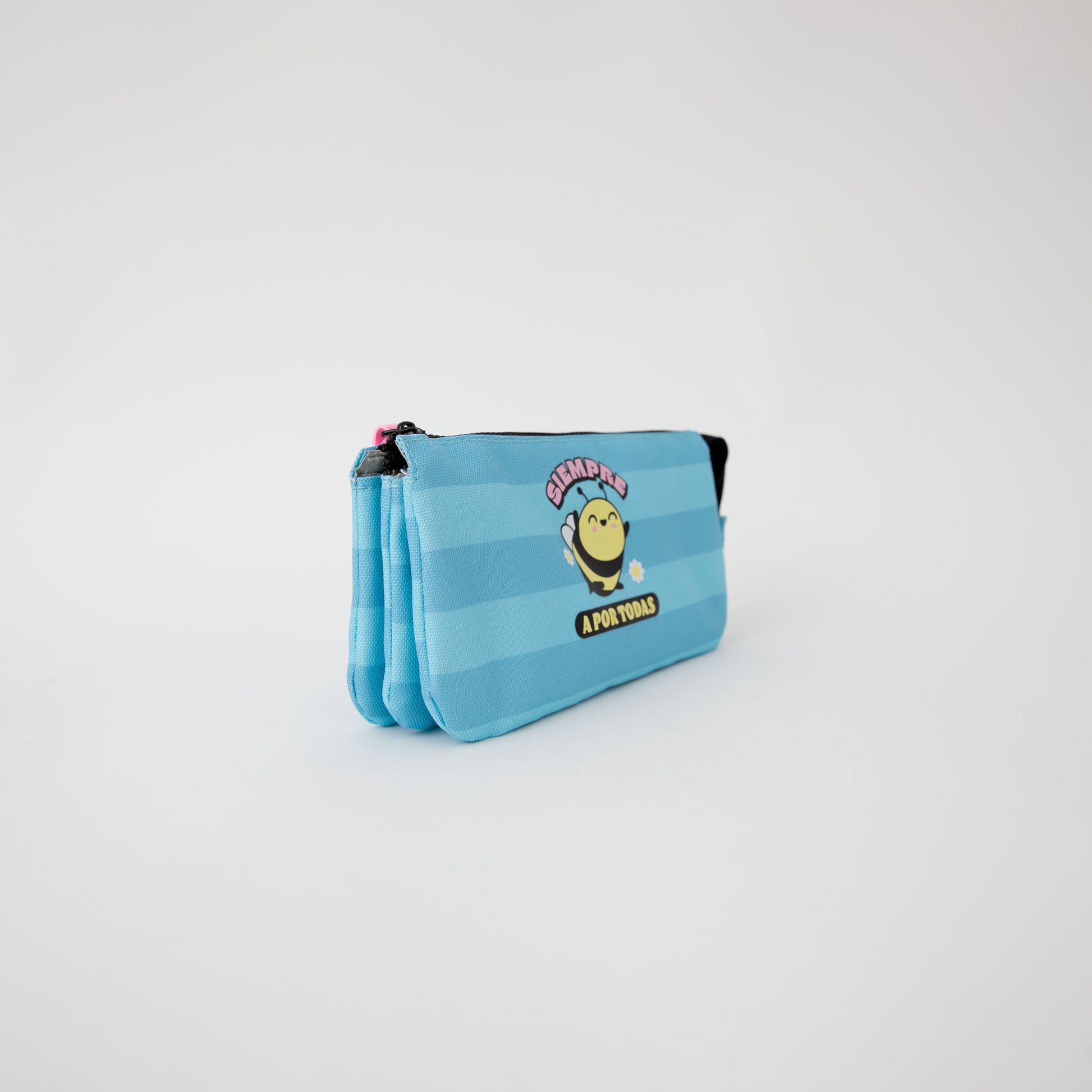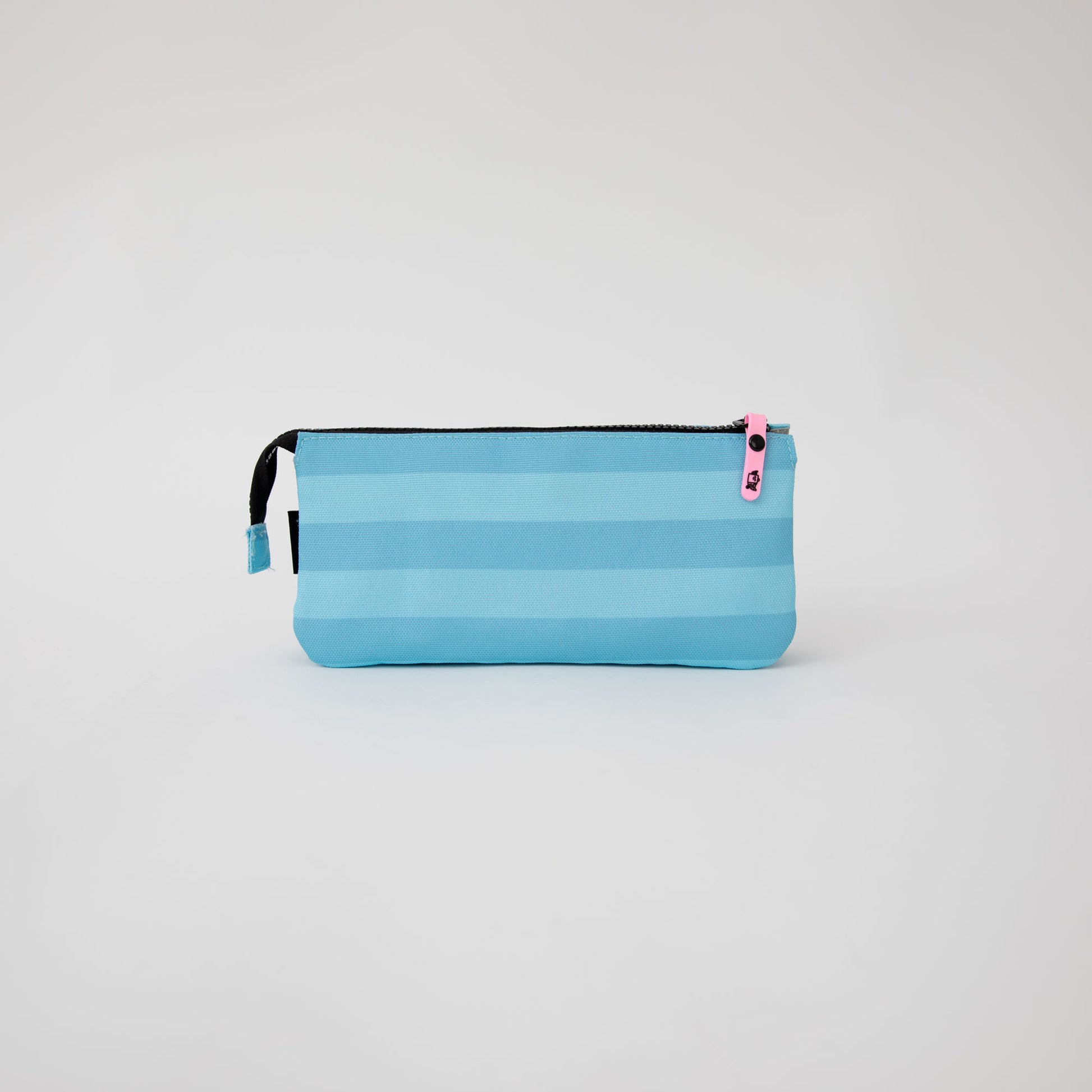 Estuche con tres compartimentos individuales y cierre de cremallera. Realizado en rPET, un material 100% reciclable, obtenido a partir del reciclaje de botellas de plástico.