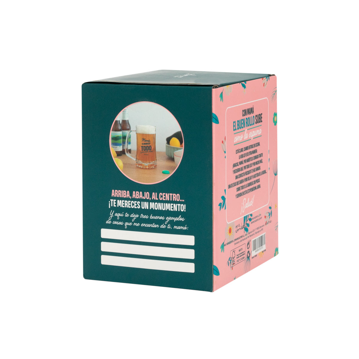 Jarra de cerveza realizada en vidrio, con un mensaje dirigido a madres. En la parte trasera del packaging podrás encontrar un texto personalizable, para aumentar así la experiencia del regalo. La jarra tiene una capacidad de 500 ml.
