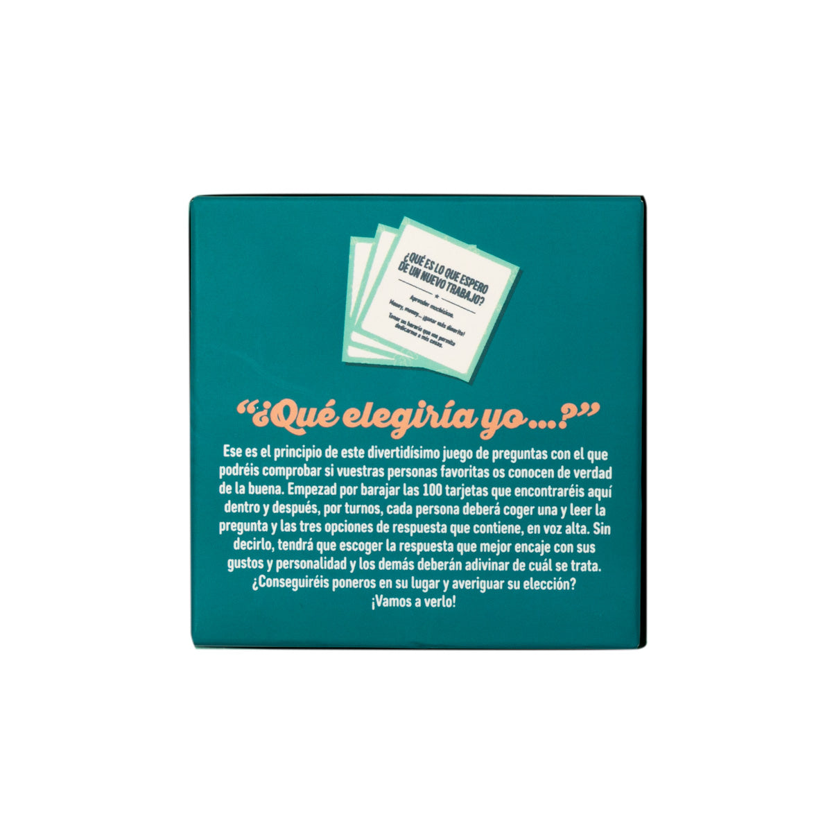 Este divertidísimo juego consta de 100 cartas y, en cada una de ellas, hay una pregunta distinta, que el jugador deberá efectuar al resto de participantes para ver si ellos saben qué elegiría él o ella en esa situación. ¿Estás preparado para saber al dedillo todo sobre todos?