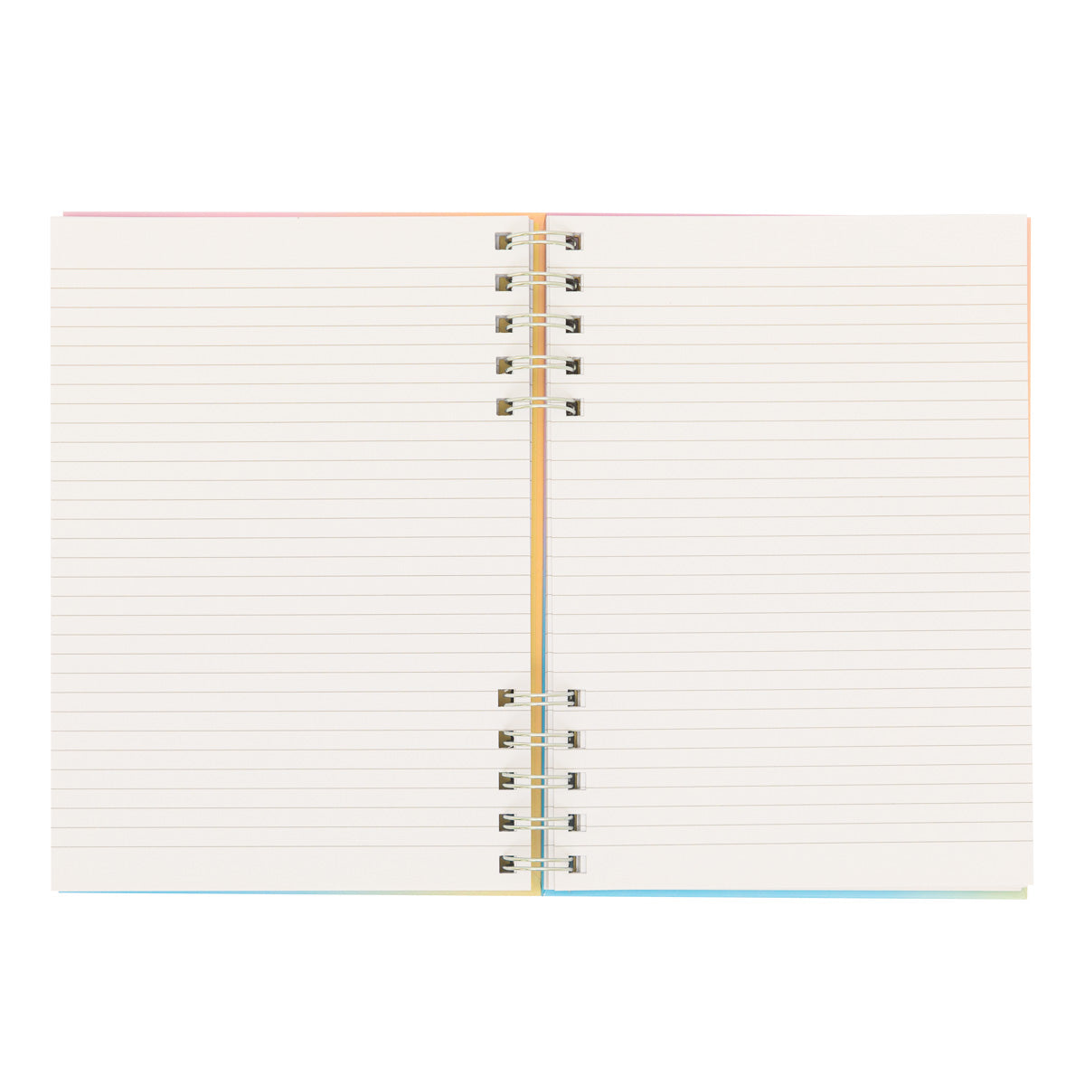 Libreta rosa tamaño A5 con encuadernación en espiral. Esta espiral está dividida en dos partes, lo que le aporta originalidad. Cuenta con 80 hojas de papel de 90 gr. con certificado FSC, lo que garantiza que proviene de bosques gestionados de forma responsable. Pautado interior: a rayas.