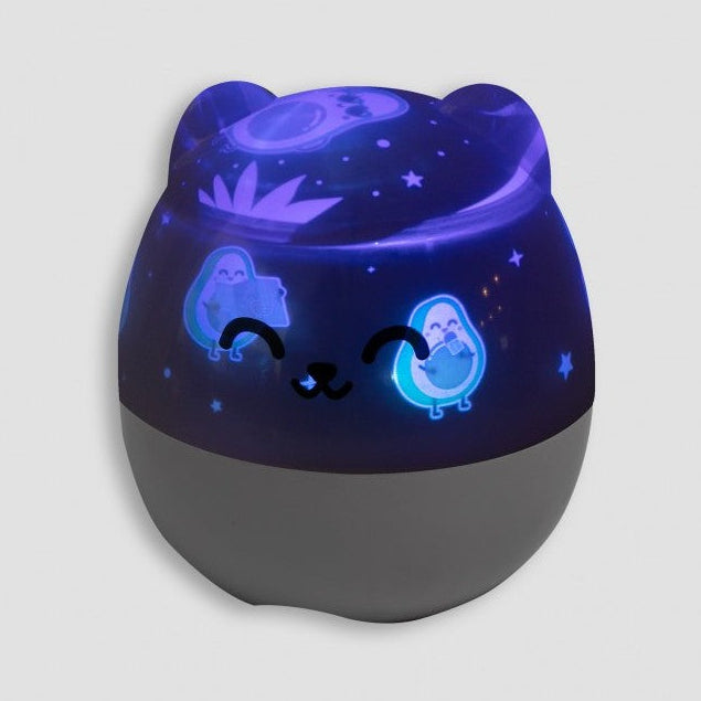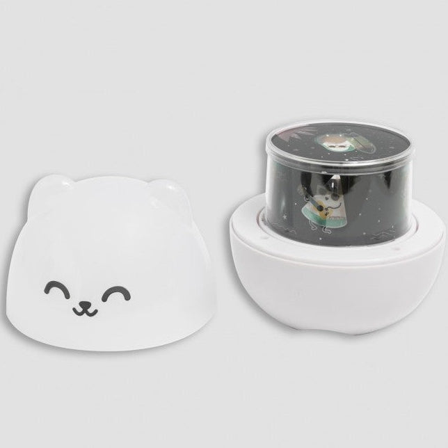 Proyector de luz con forma de un divertido personaje Mr. Wonderful. Proyecta una escena espacial imaginada por nuestro equipo de diseño.