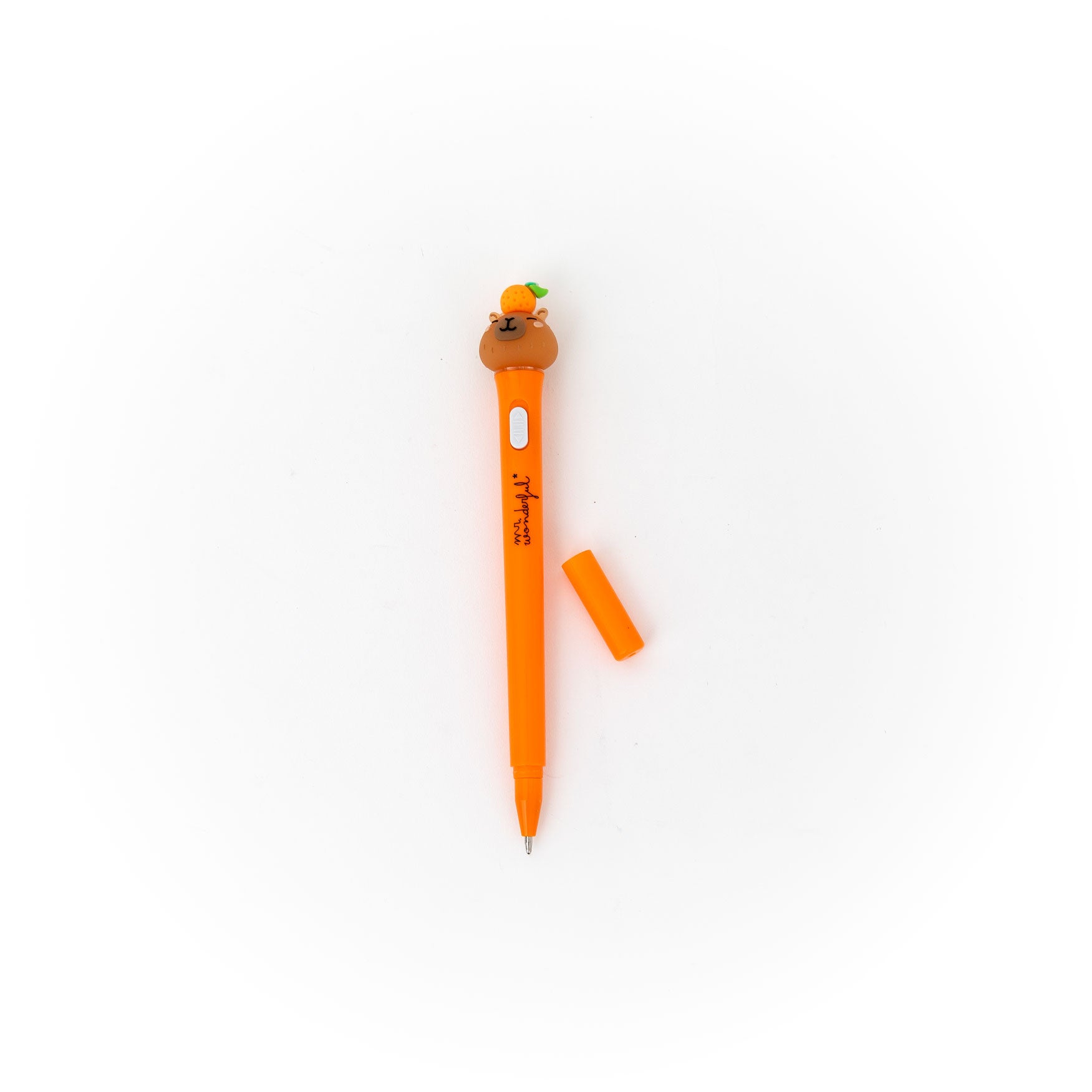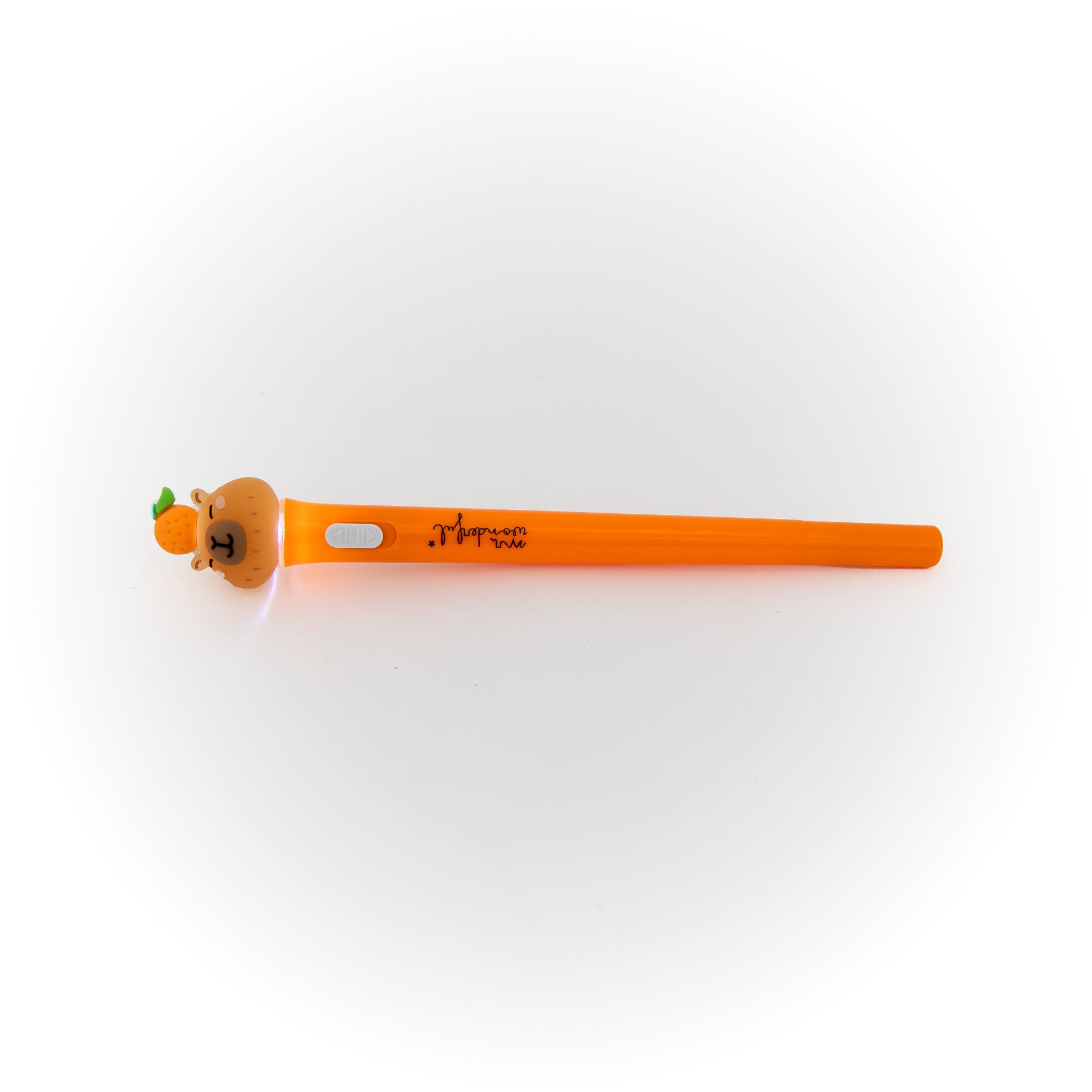 Bolígrafo con un personaje Mr. Wonderful en su extremo y luz, realizado en PVC y plástico PET.