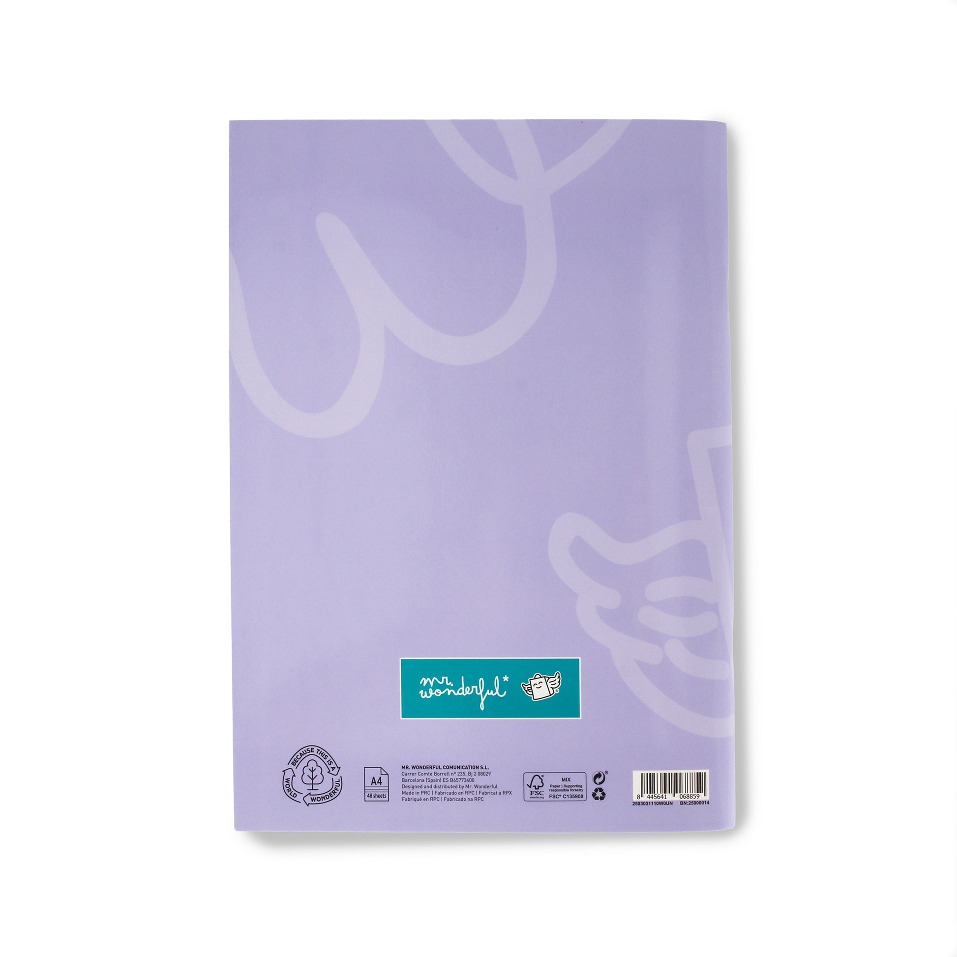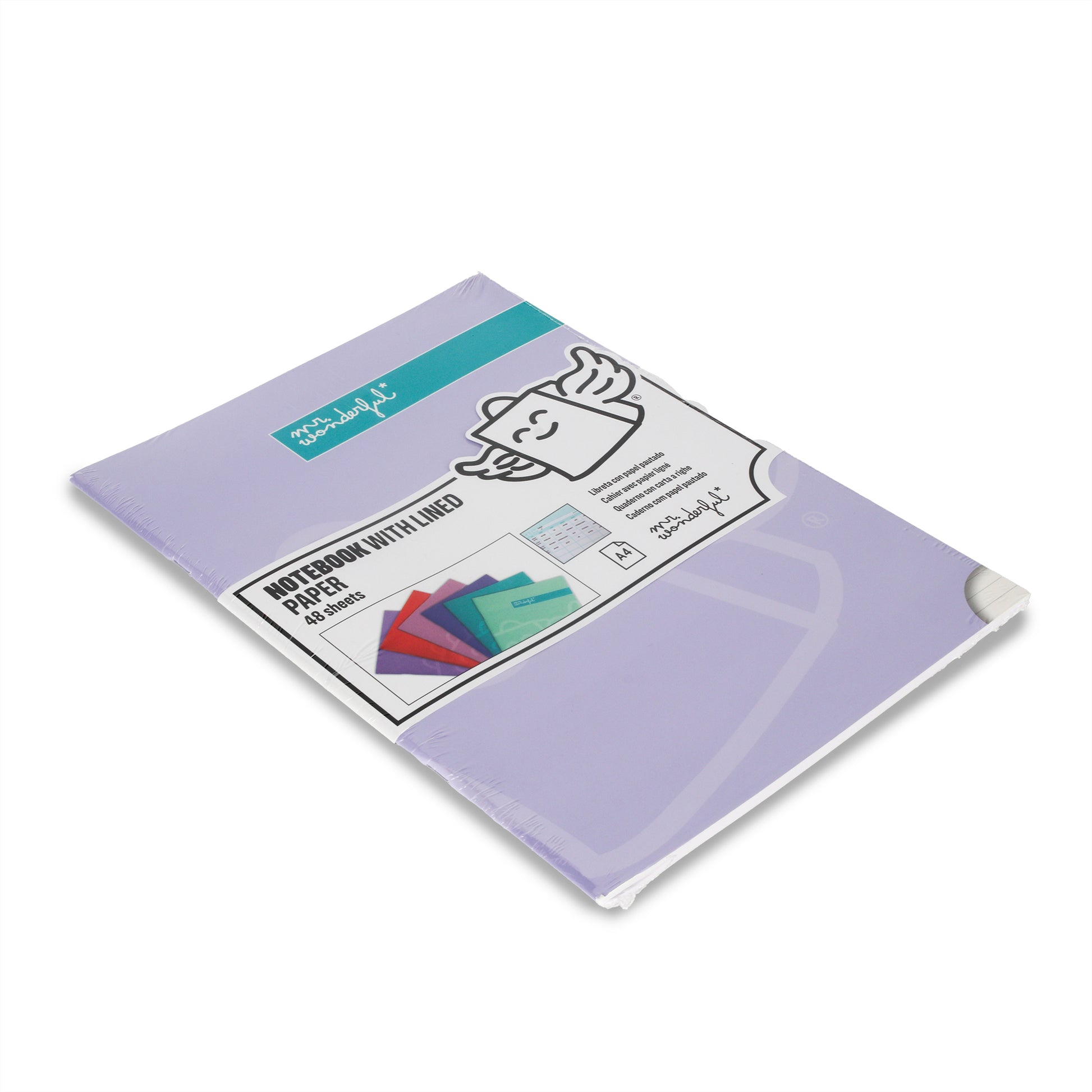 Libreta A4 con tapa blanda y encuadernación grapada, con páginas rayadas en su interior.