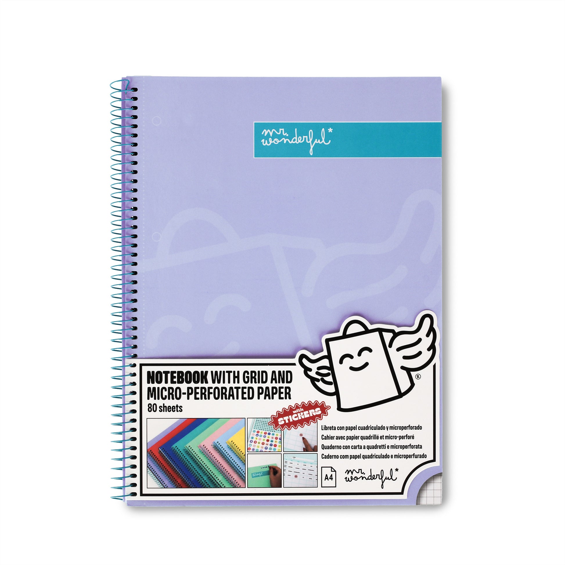 Lilac A4 notebook 80 sheets - Grid paper and micro-perforated