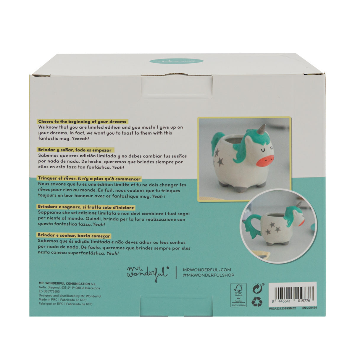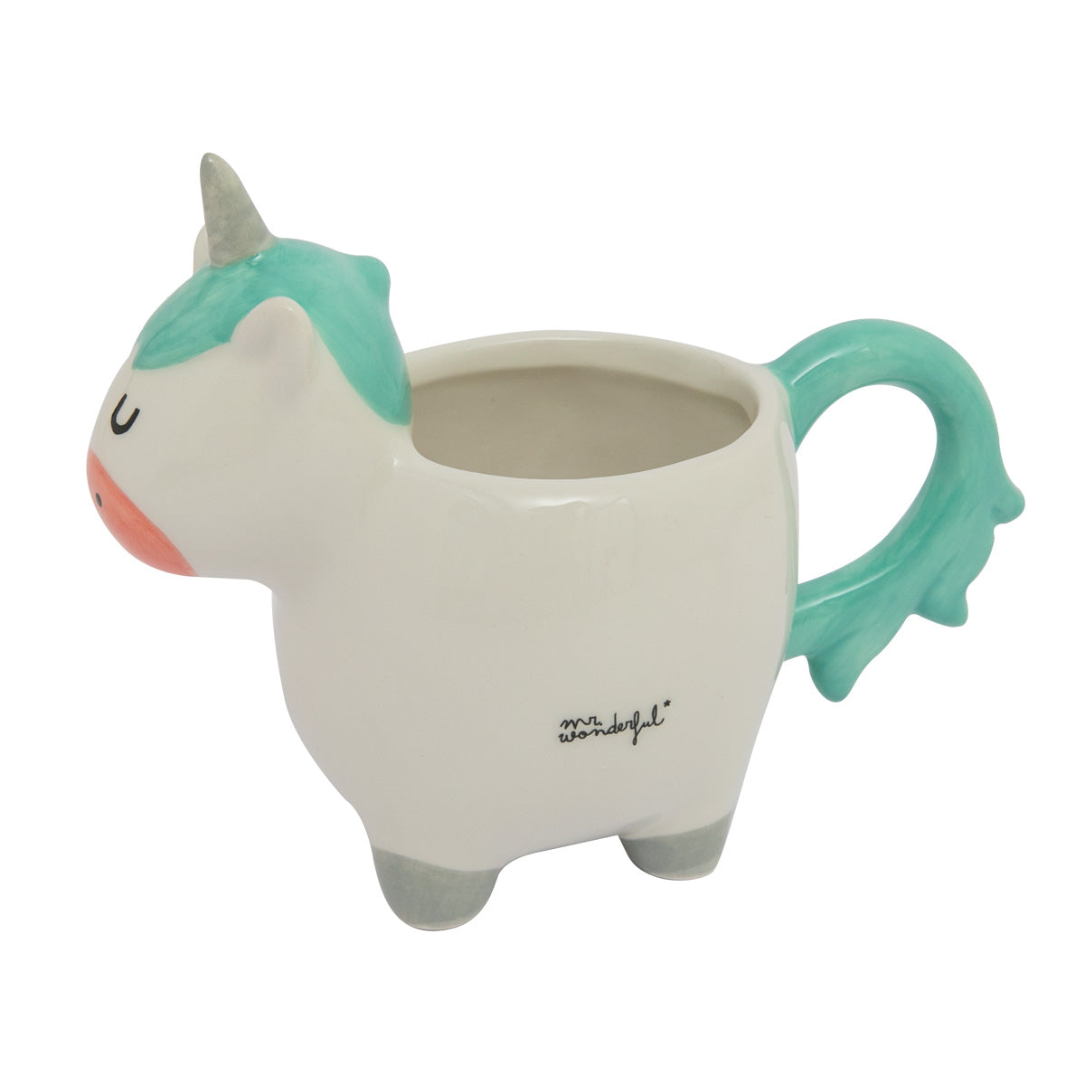 Taza realizada en cerámica con forma de unicornio Wonder.