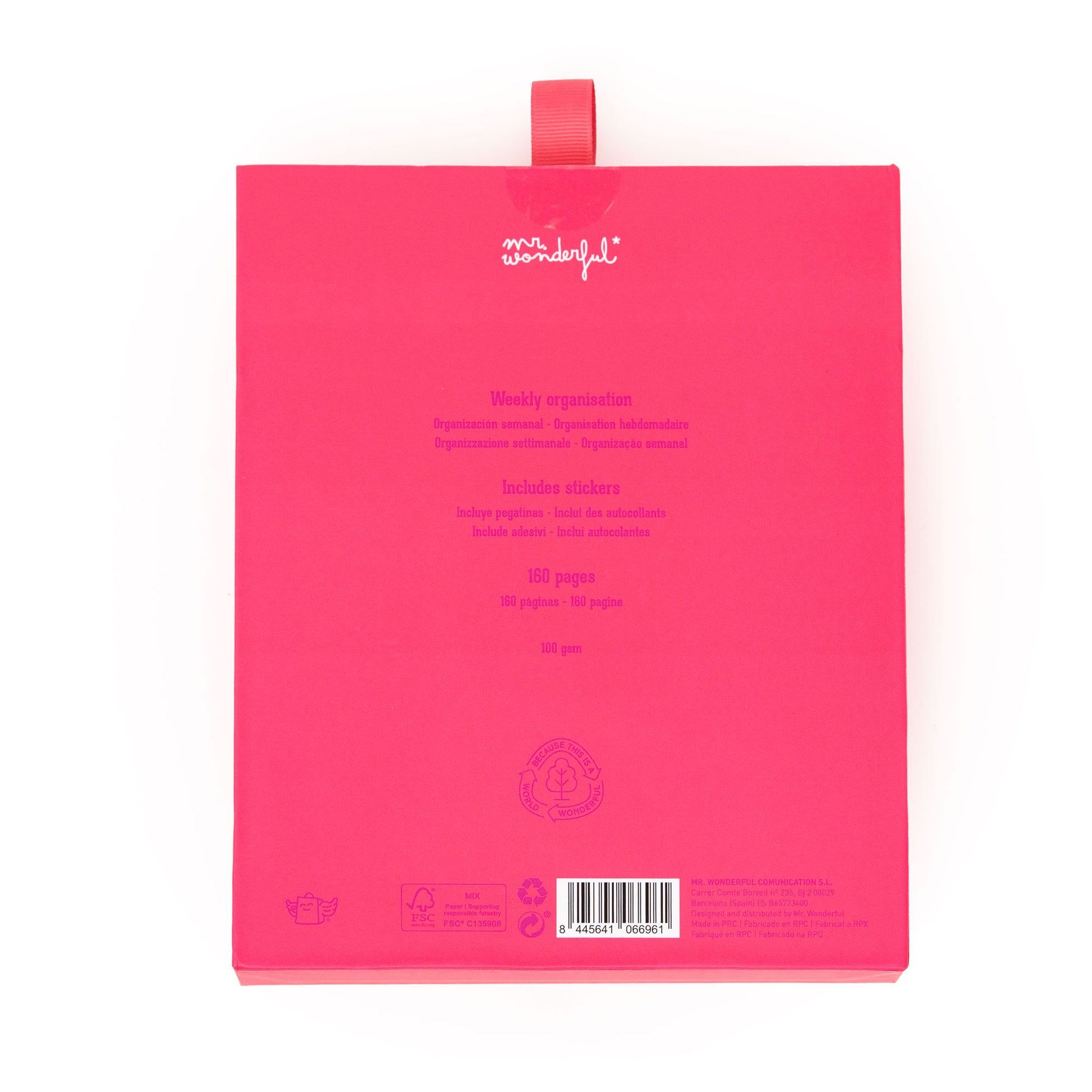 Una agenda de tamaño A6 y de organización semanal, sencilla y básica, sin los extras habituales que encontramos en las agendas Mr. Wonderful.