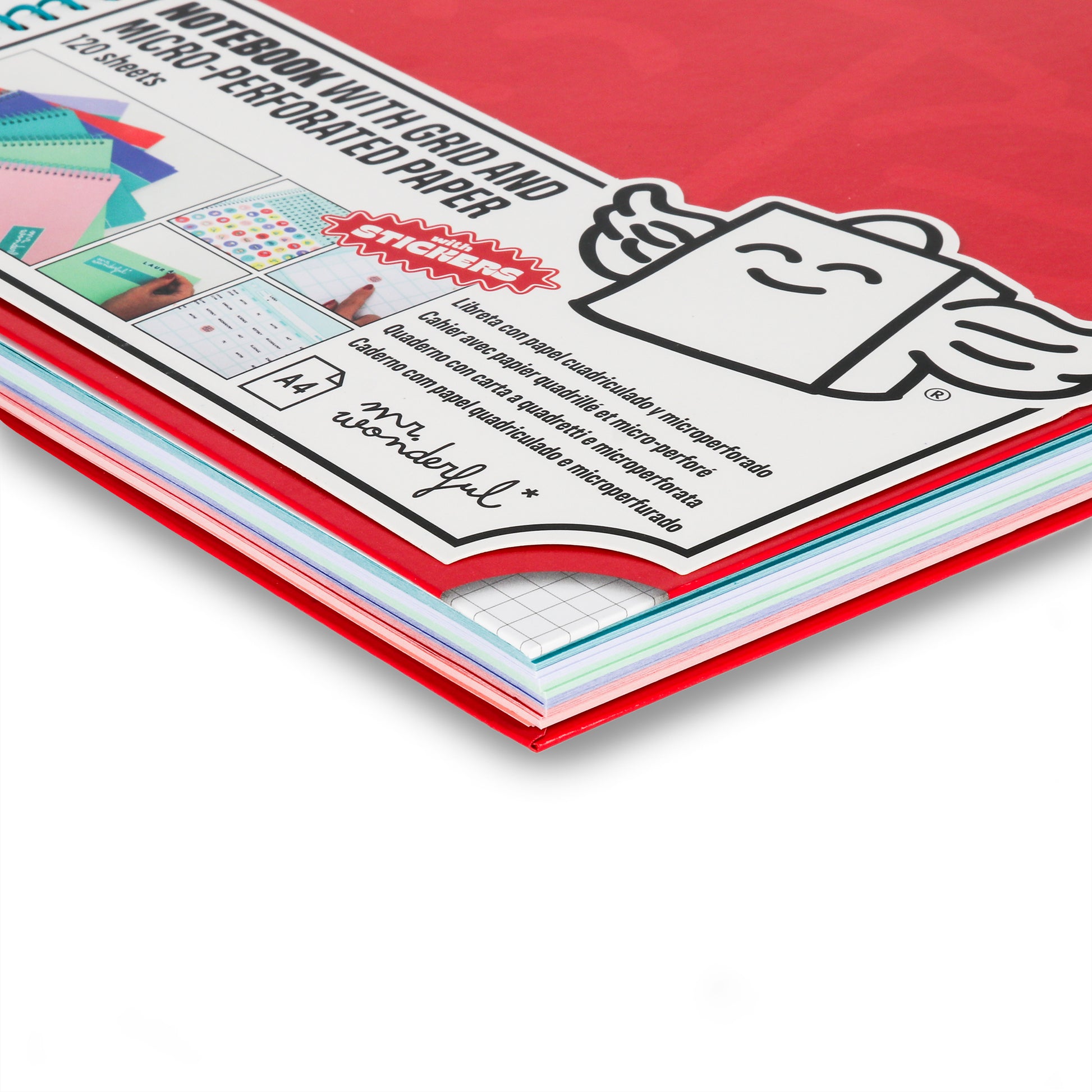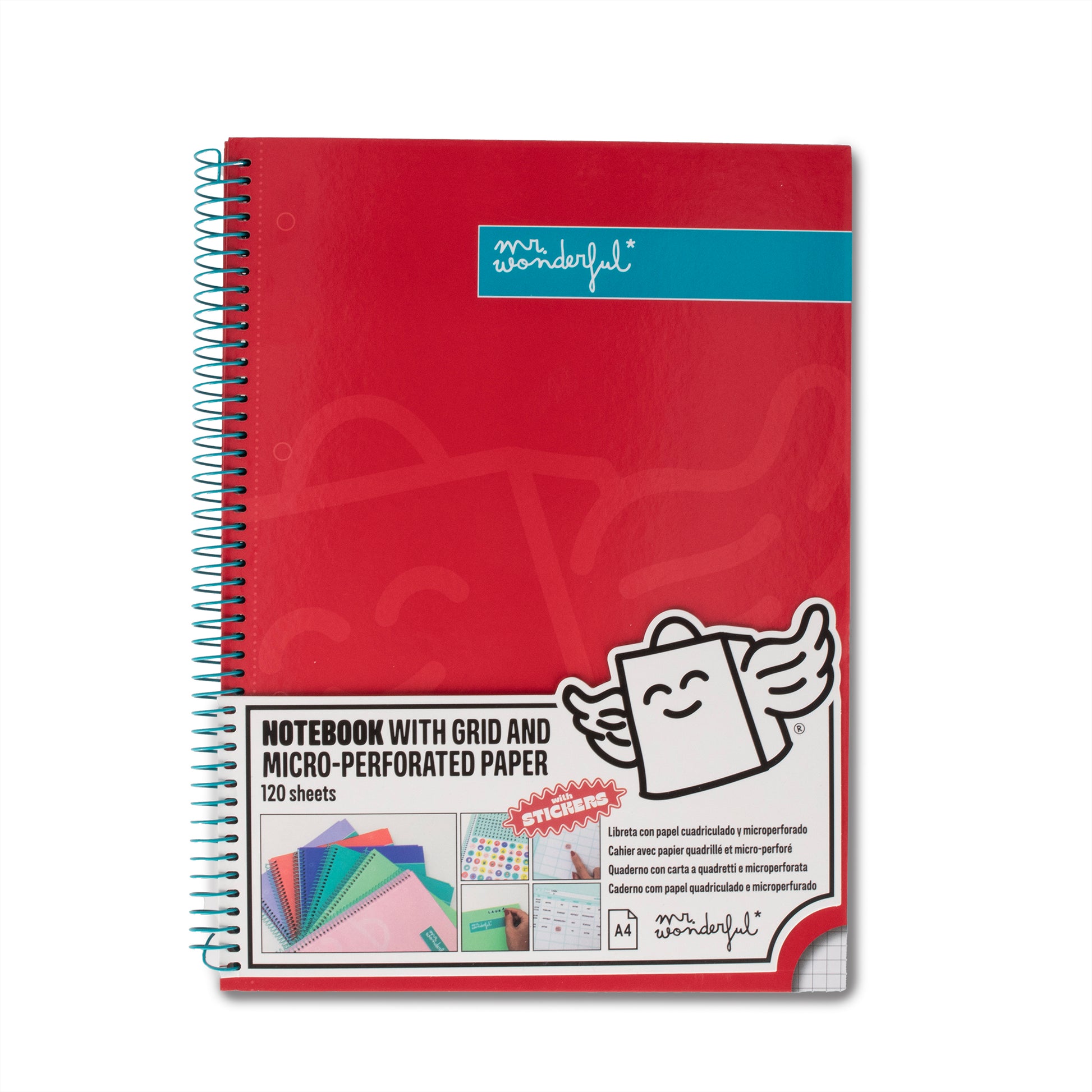 Libreta A4 roja 120 sheets - Grid paper and micro-perforated