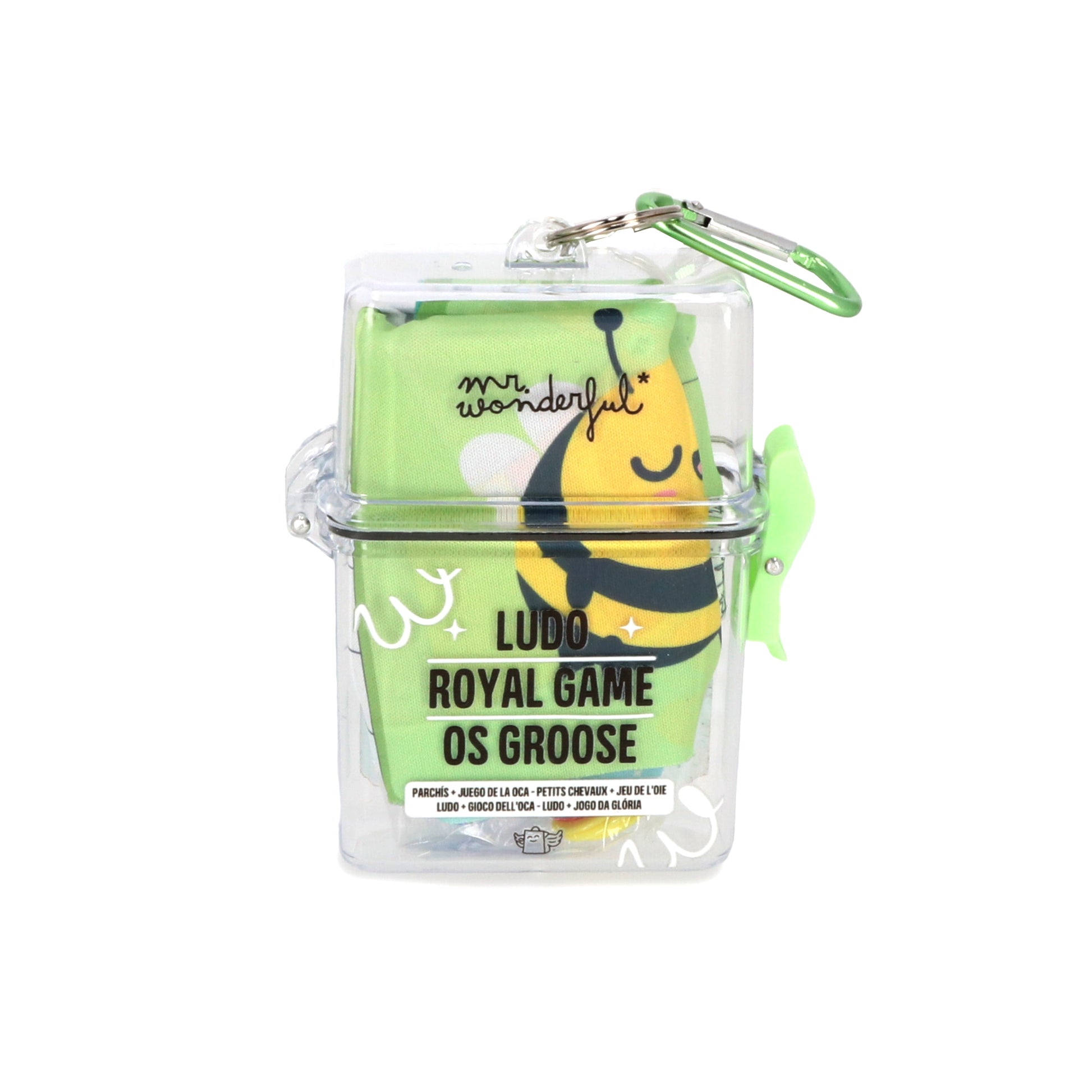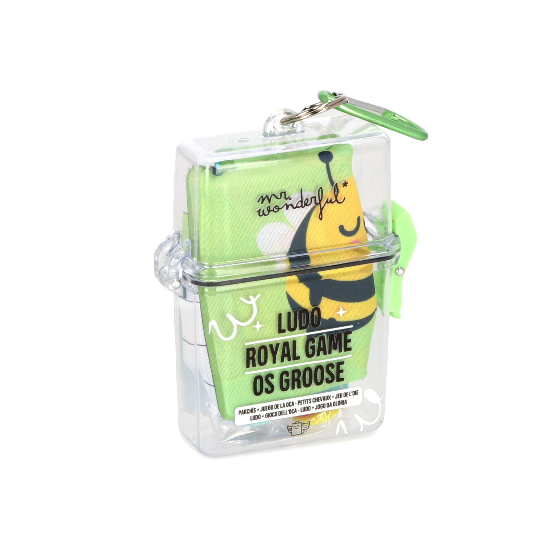 Juego de mesa de viaje, de pequeño tamaño. En realidad, se trata de dos juegos en uno, ya que el tablero (fabricado en tela) es reversible: por un lado encontraremos un juego del parchís y por el otro el juego de la oca.