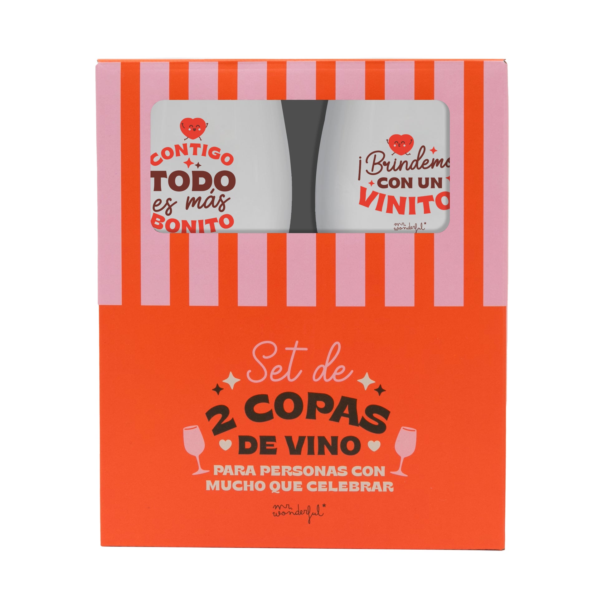 Set de 2 copas de vino - Contigo todo es más bonito. ¡Brindemos con un vinito!