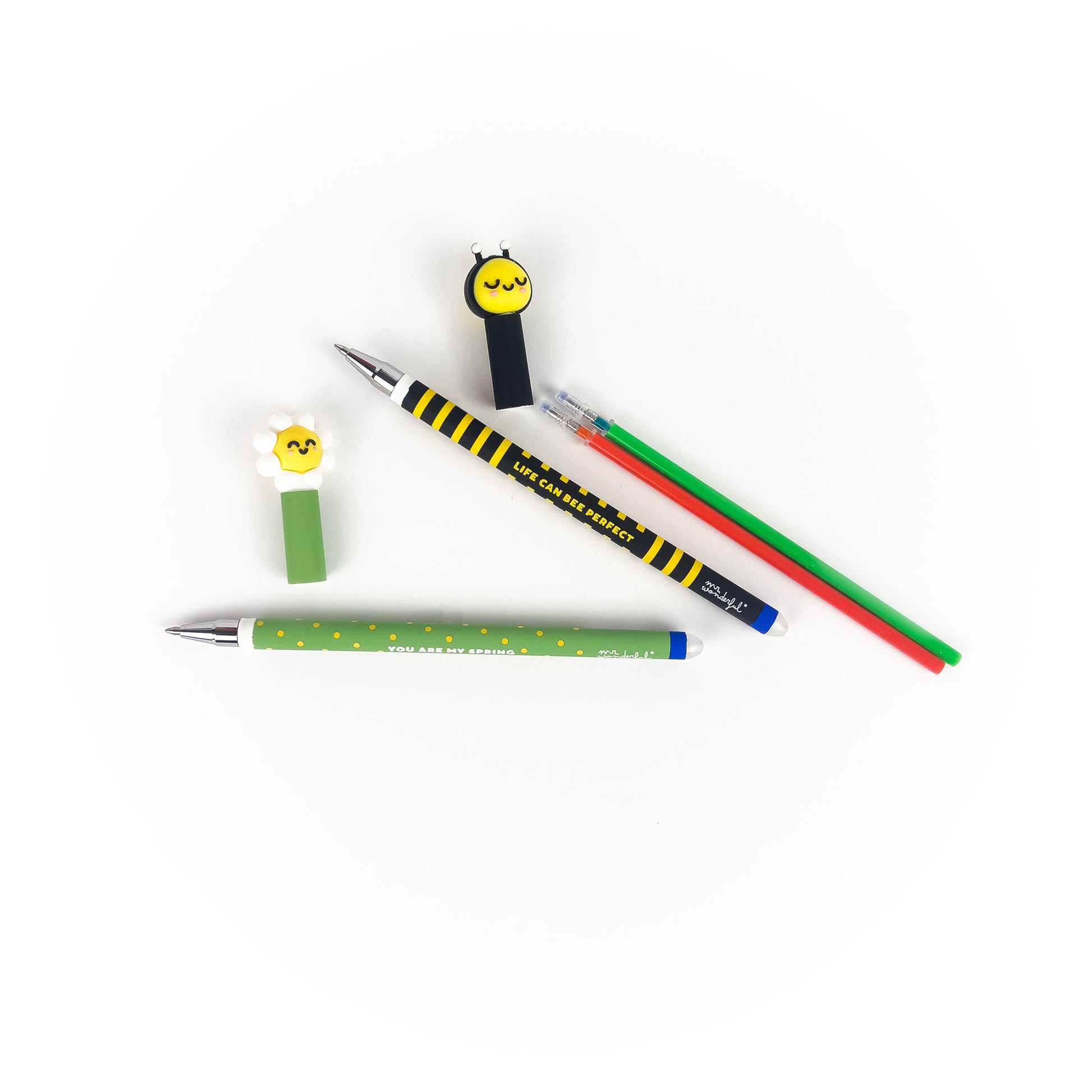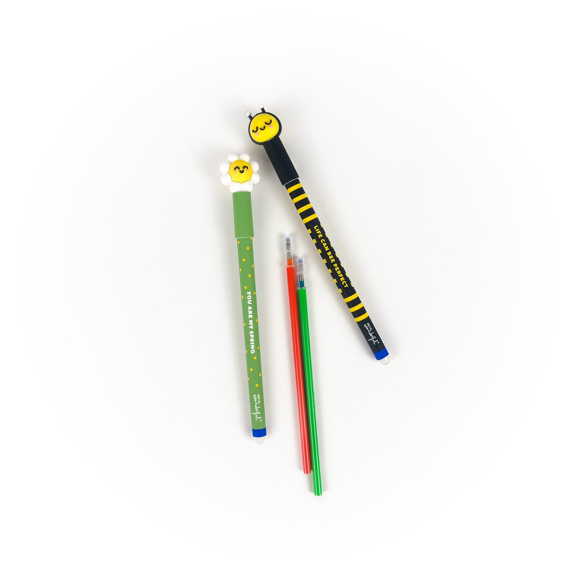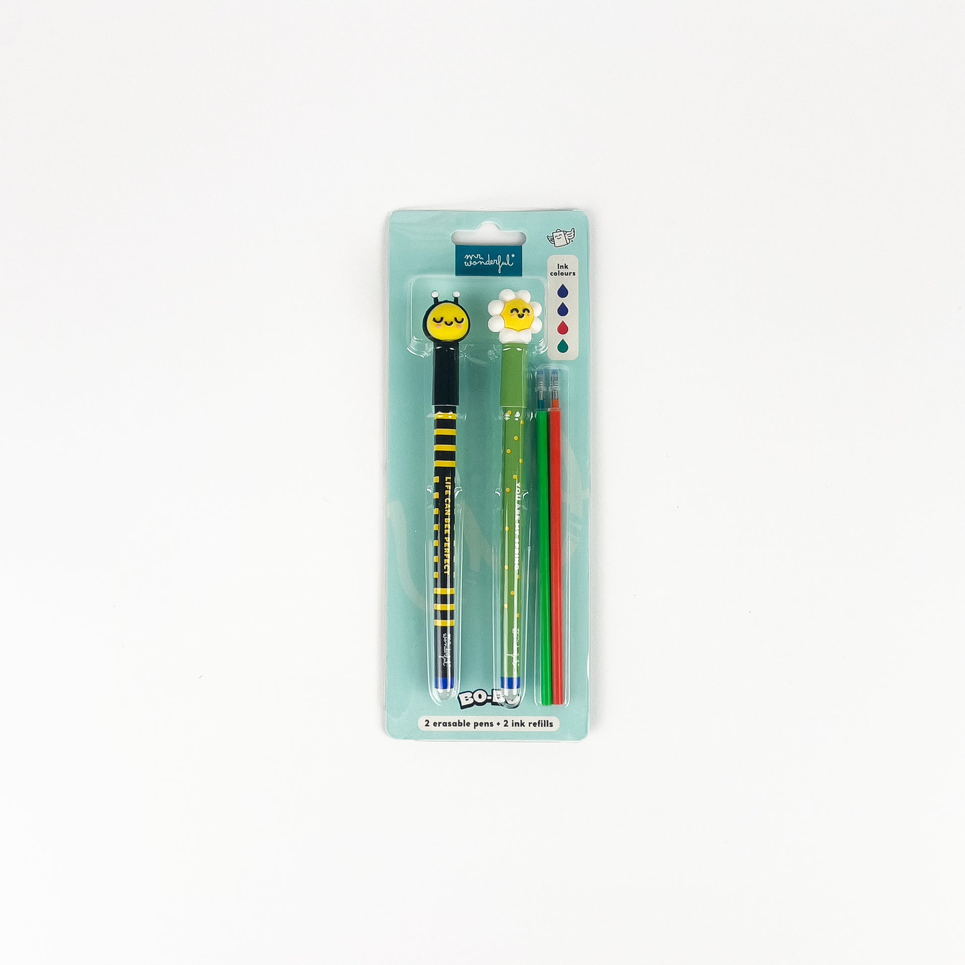 Set of 2 erasable Bo-Bo pens + 2 ink refills - Bee and Daisy