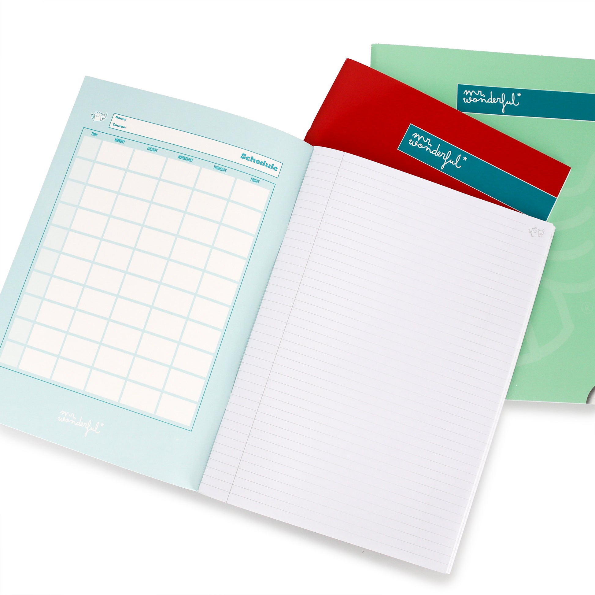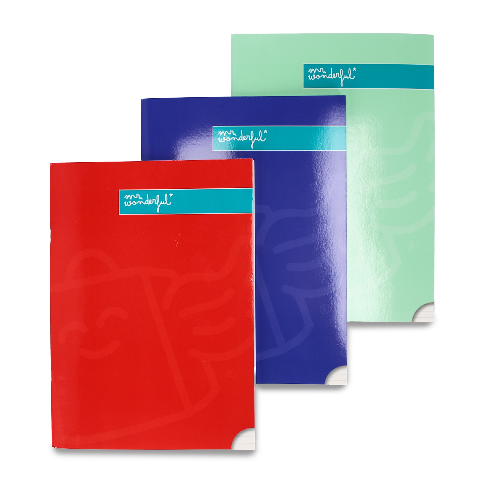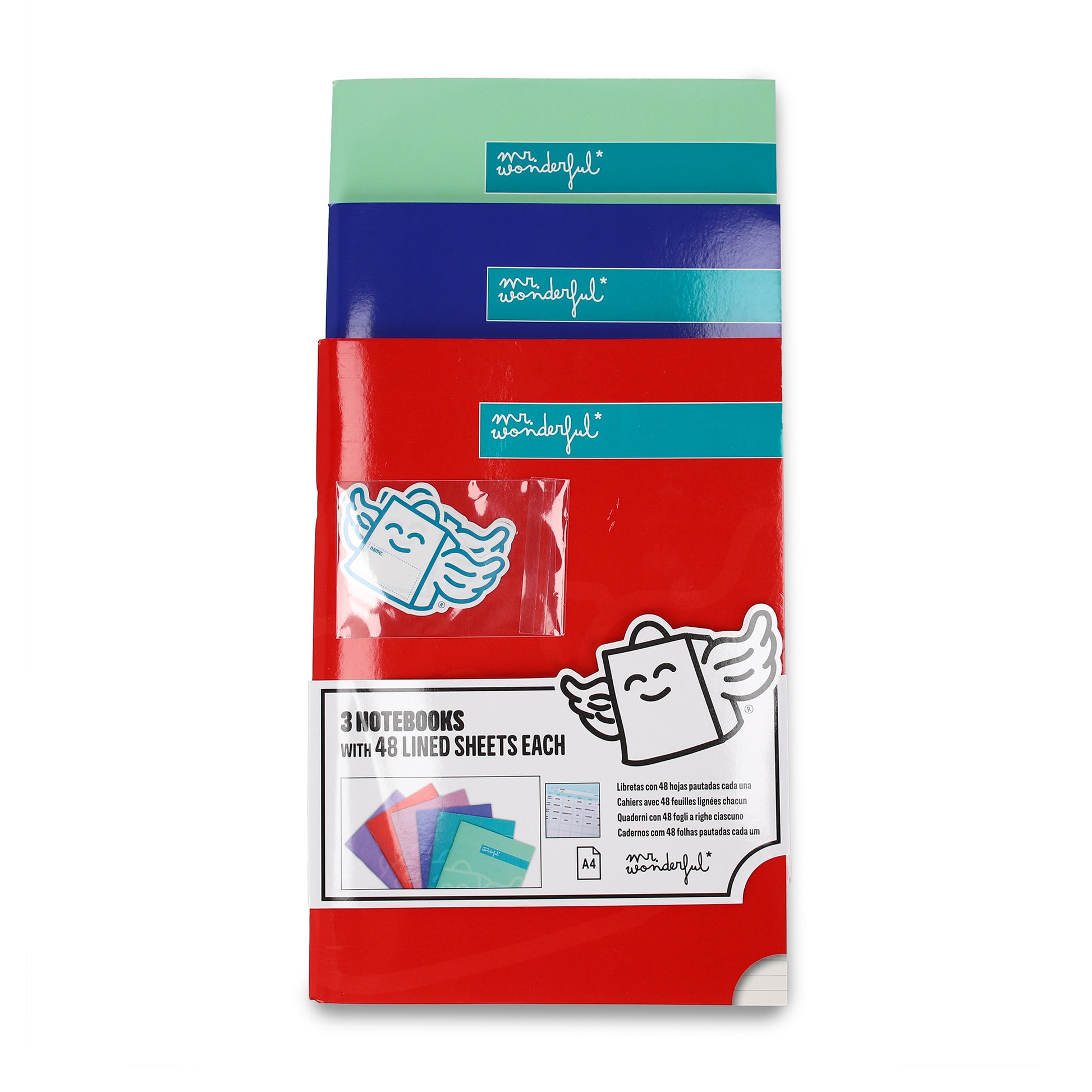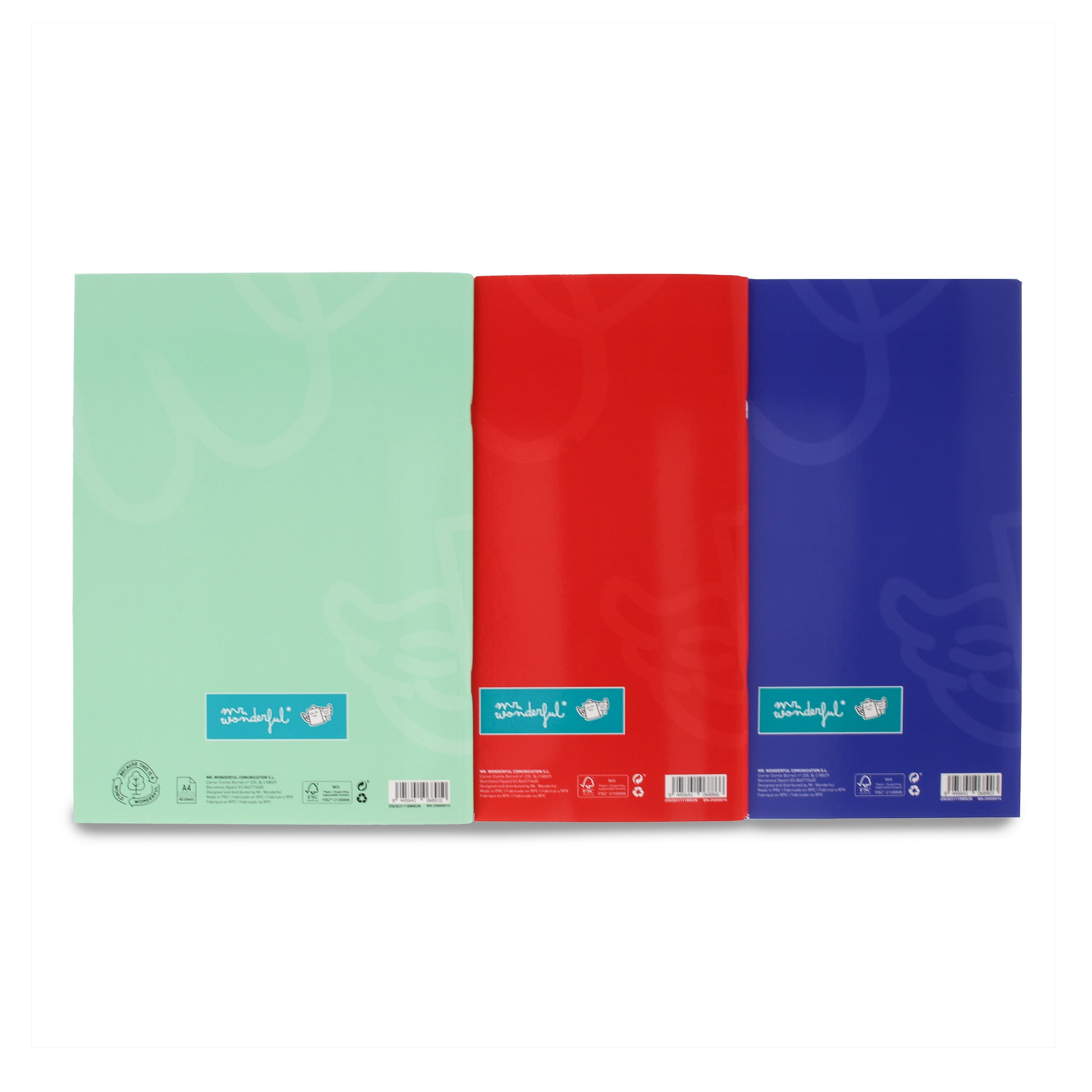 Set of 3 A4 notebooks 80 lined sheets - Red, blue and green