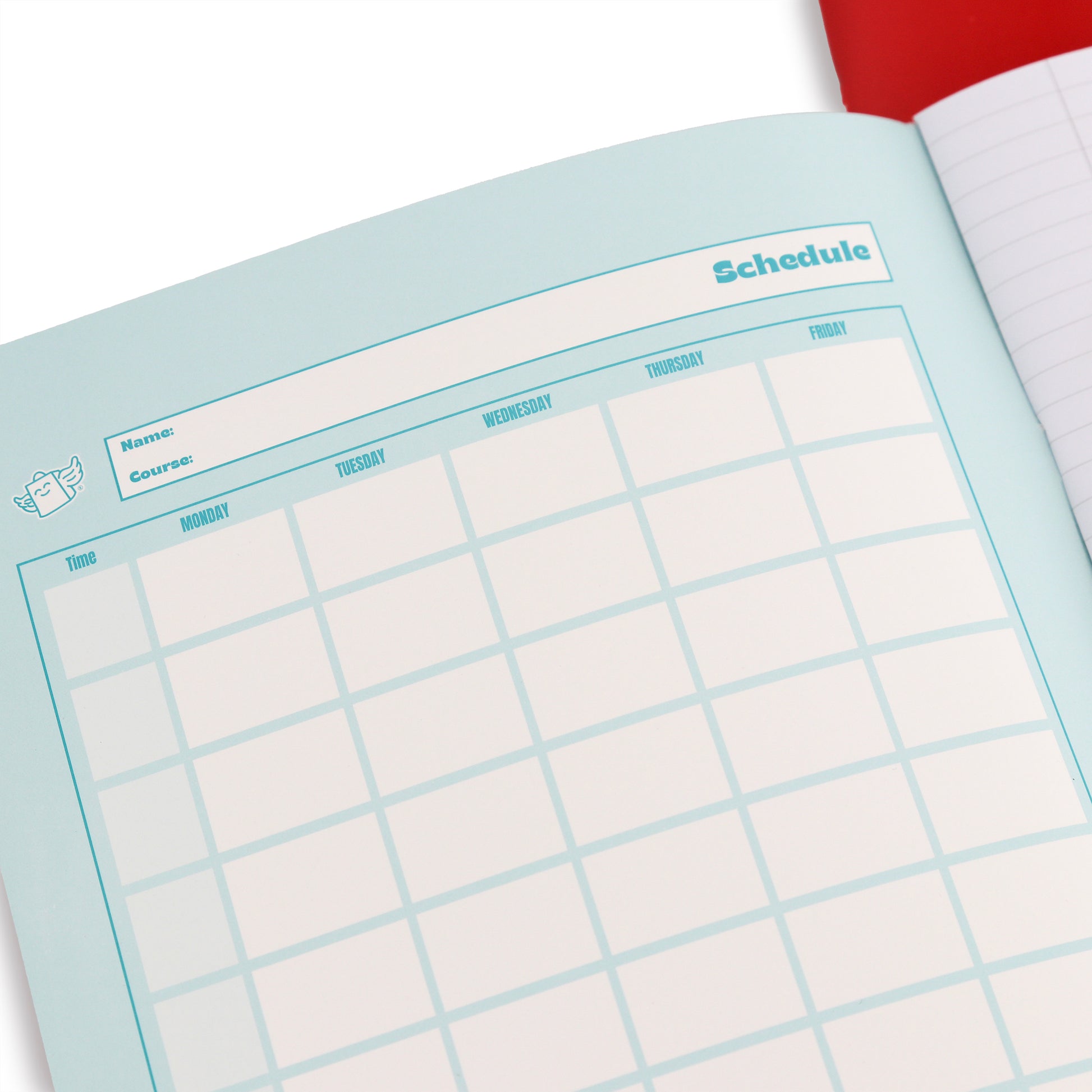 En la parte interior de la portada encontramos una cuadrícula pensada para anotar en ella el horario del curso escolar. 48 páginas de 90 gramos.