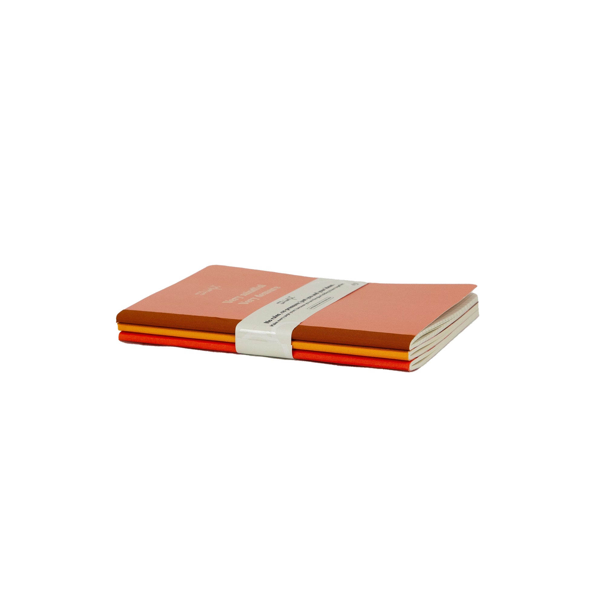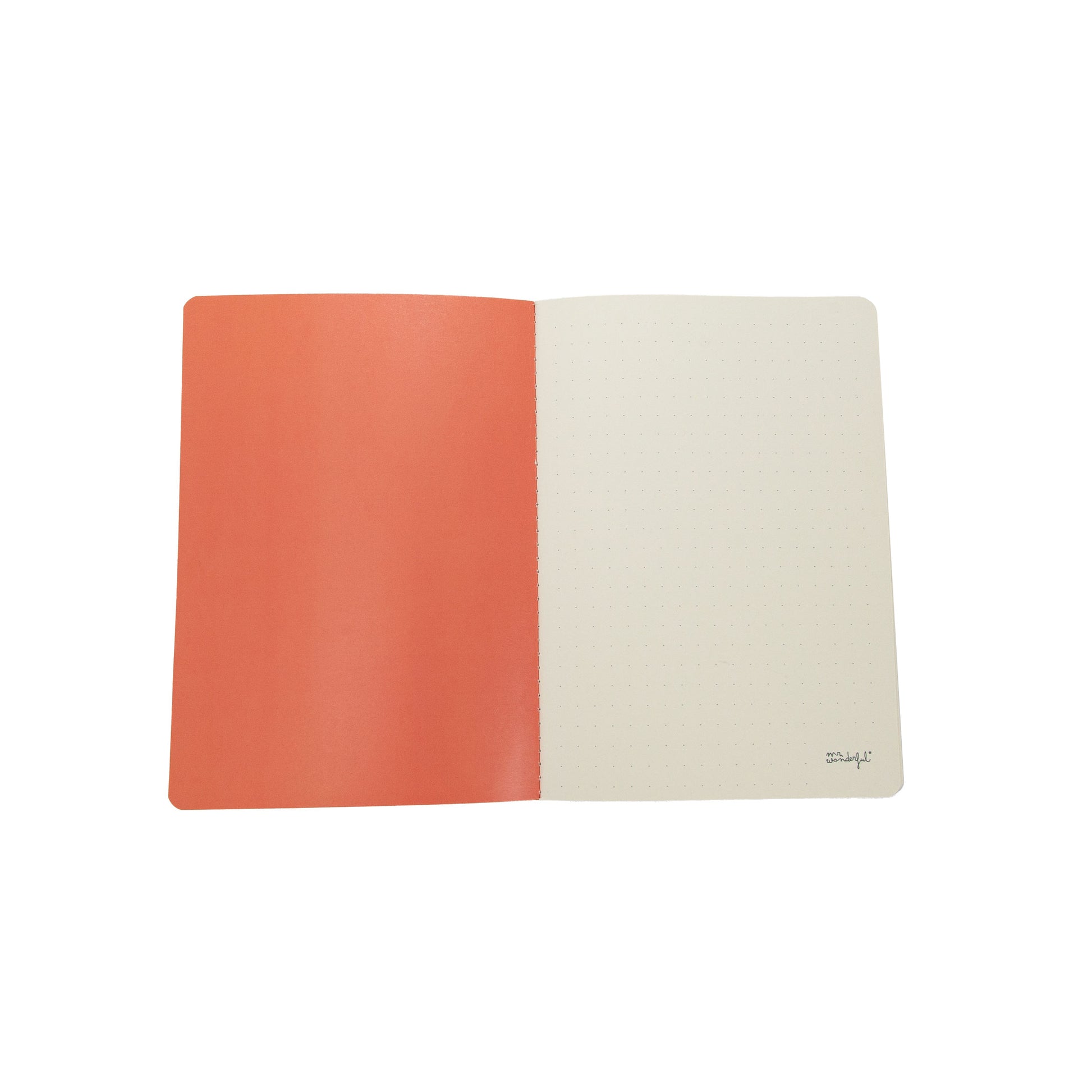 Set de 3 libretas de 19x25 cm con encuadernación cosida, permitiendo una apertura de 180º. Cada una de ellas cuenta con 80 páginas (una de las libretas tiene páginas a cuadros, otra las tiene pautadas y la última con puntitos) y con la certificación FSC, que garantiza que el papel del que están fabricadas proviene de bosques gestionados de forma responsable.